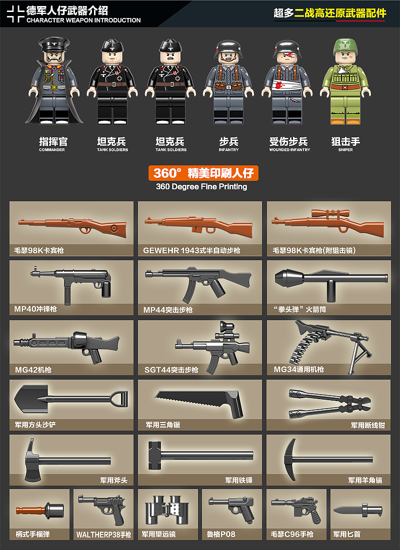 1,.全冠这套黑豹坦克成品很大,比例应该是超过了1:32 ,不过坦克的还原度做的非常好。 2.整体的积木设计采用的模块化设计,易于组装和拆解,车体和炮塔的大结构非常稳固,履带效果非常好,除了静态欣赏以外,还可以拿到户外去玩玩,只是在把玩时候注意前部裙带装甲那块比较脆弱,裙带的中间部分很稳固,中间部分抓拿。 3.人仔不错,360度印刷已经是标配,特别是将军值得拥有。 4.建议推出数字印刷件扩展包和履带件补充包,玩家自行MOC 会方便很多,这样可以丰富同全冠比例的坦克家族,形成一套独立的全冠玩法
