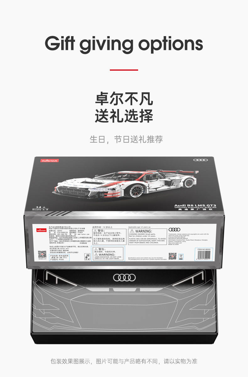 奥迪R8 LMS GT3(Audi R8 LMS GT3)属于1:8系列积木套组,整个套组包含 3314 个积木颗粒。首发于2022年。