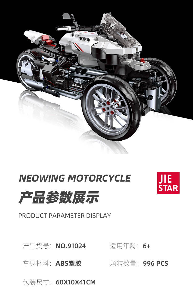 本田NEOWING三轮摩托车(Honda Neo Wing)属于机械组系列积木套组,整个套组包含 996 个积木颗粒。首发于2022年。