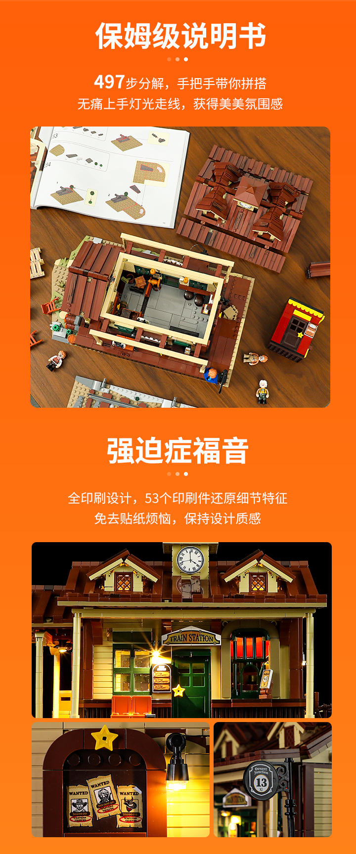 西部火车站属于西部系列积木套组,整个套组包含 1974 个积木颗粒。首发于2024年。