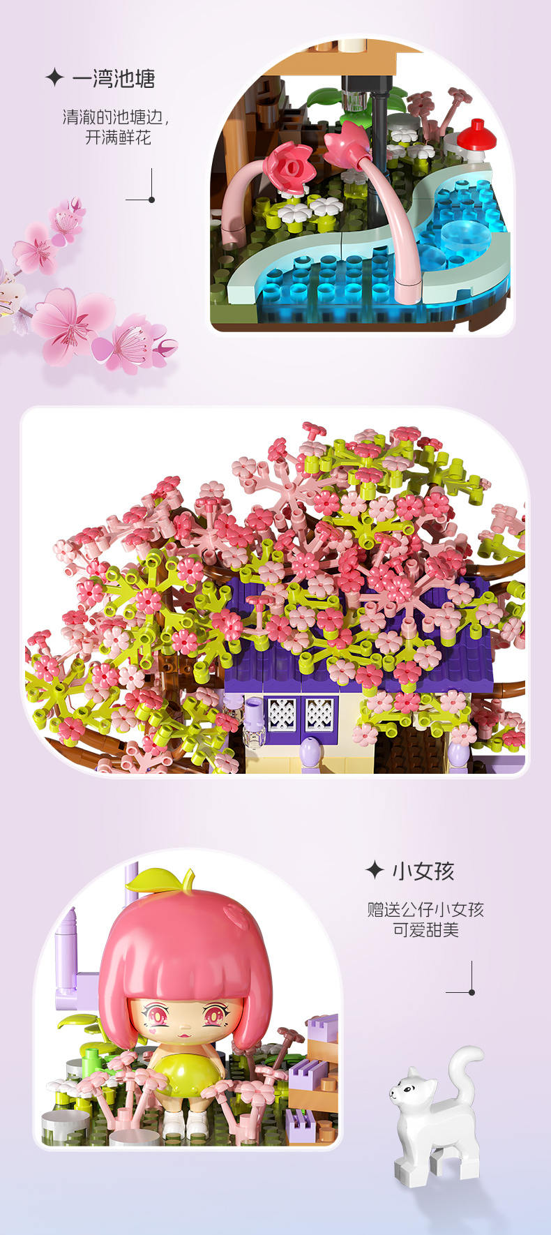 樱花花屋(Cherry Vlossoms Flower House)属于主题系列系列积木套组,整个套组包含 1275 个积木颗粒。首发于2024年。
