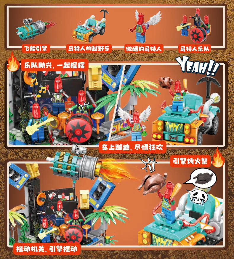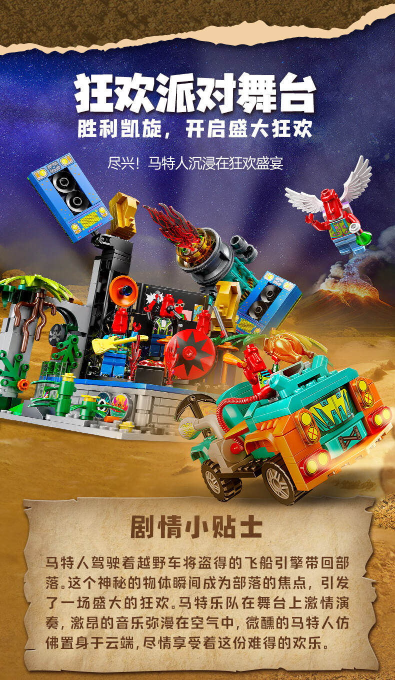 疯狂部落:狂欢派对舞台属于主题系列系列积木套组,整个套组包含 635 个积木颗粒。首发于2024年。