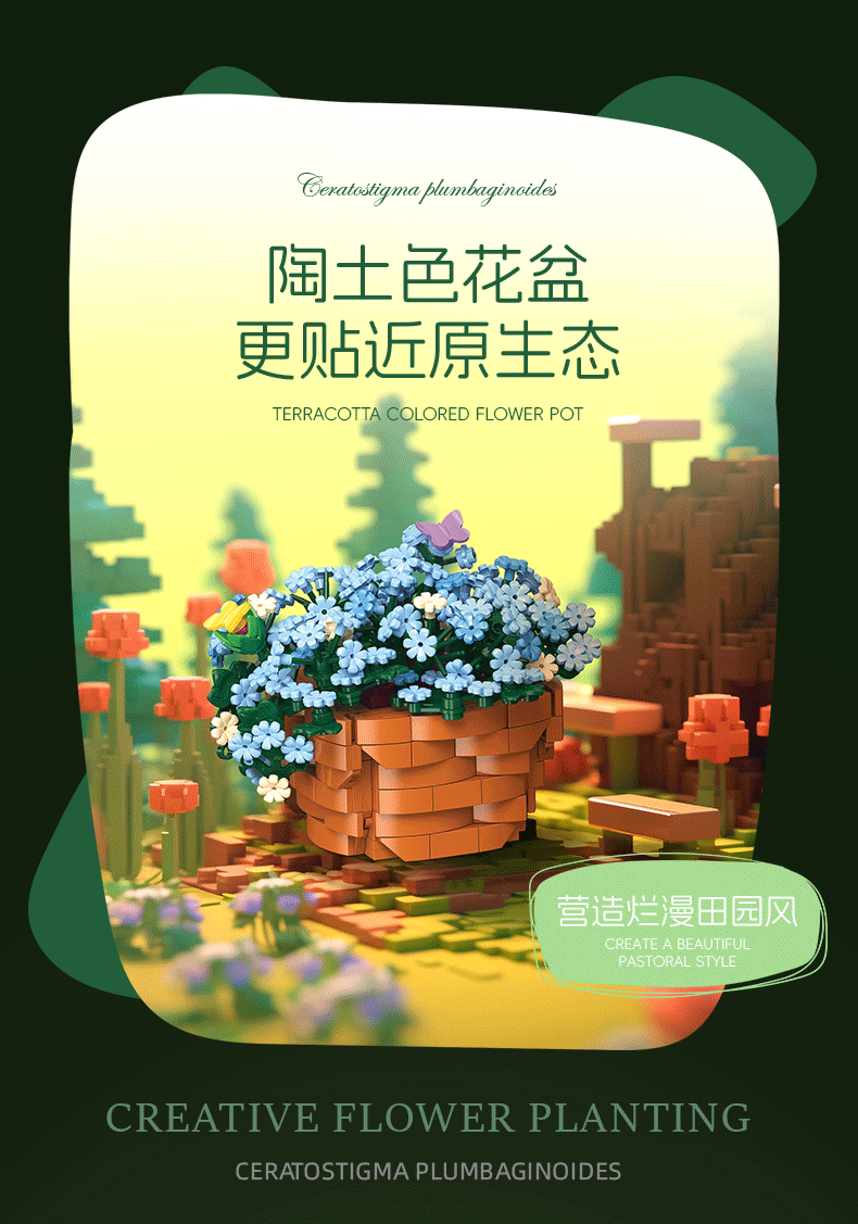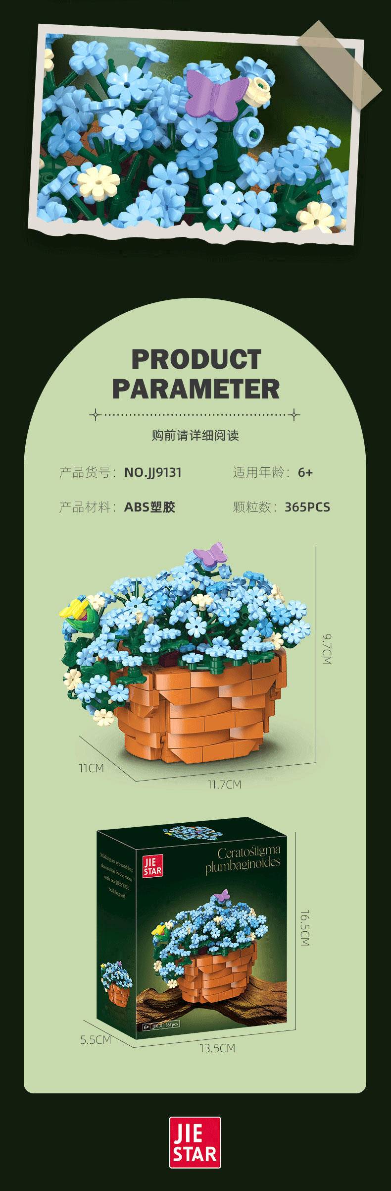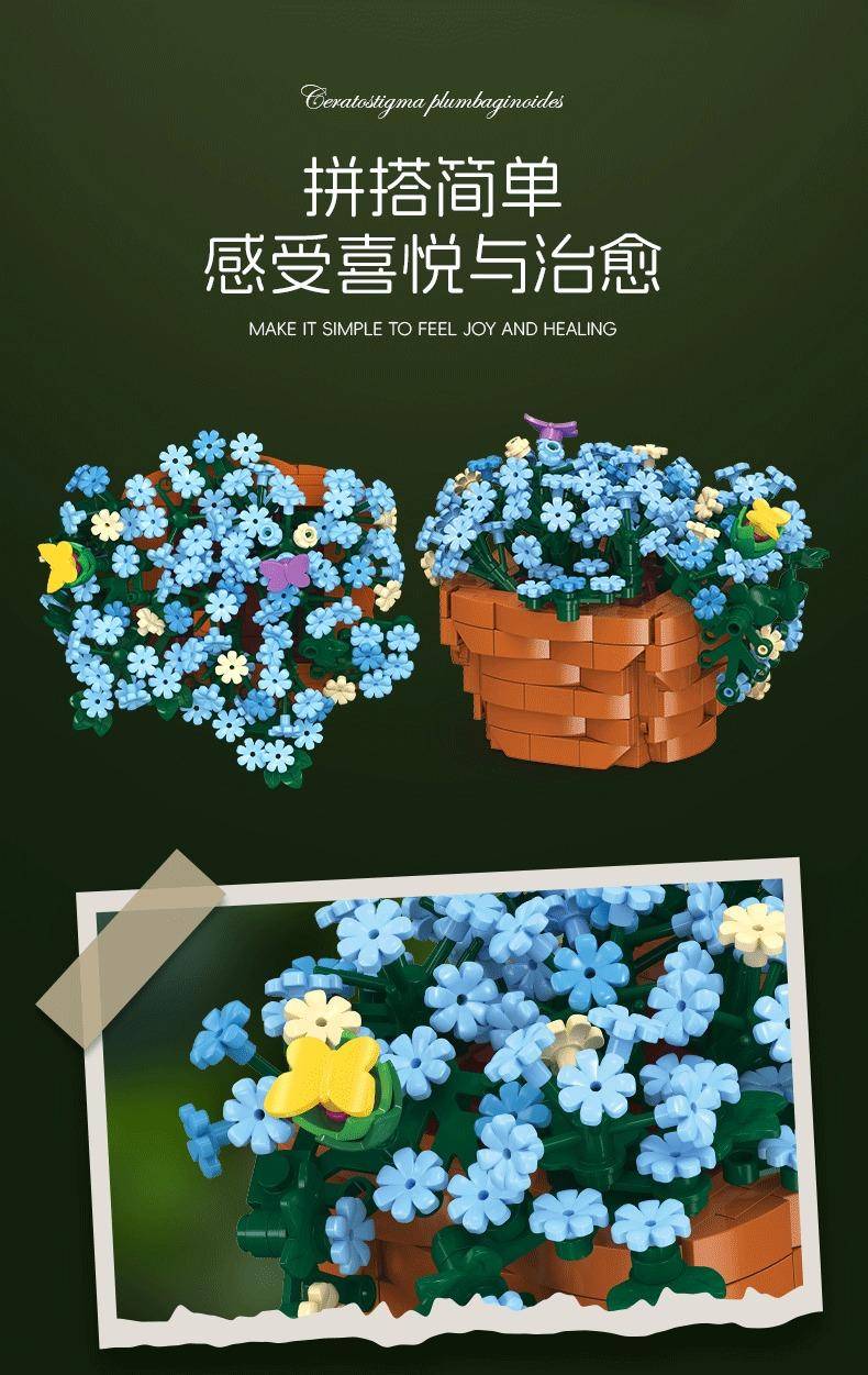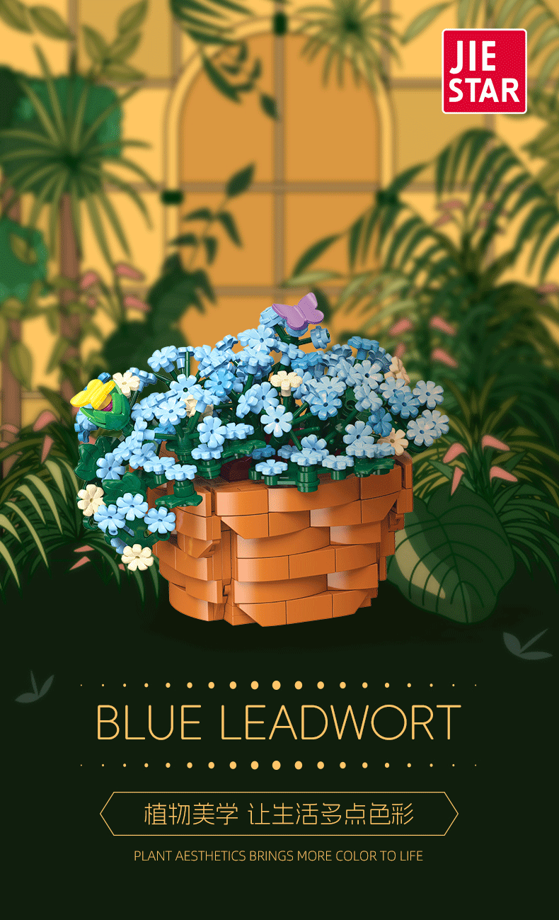 蓝雪花盆栽(Ceratostigma Plumbaginoides)属于花卉植物系列积木套组,整个套组包含 365 个积木颗粒。首发于2024年。