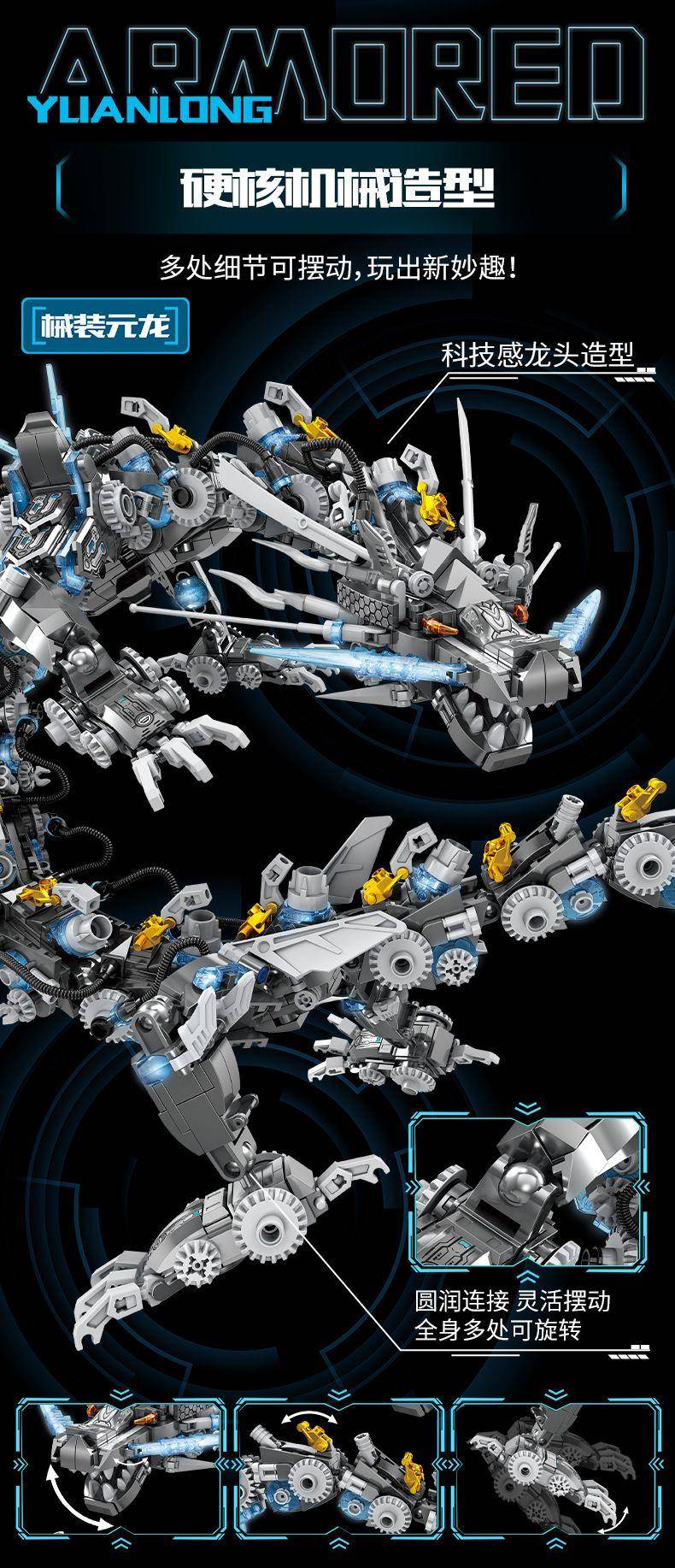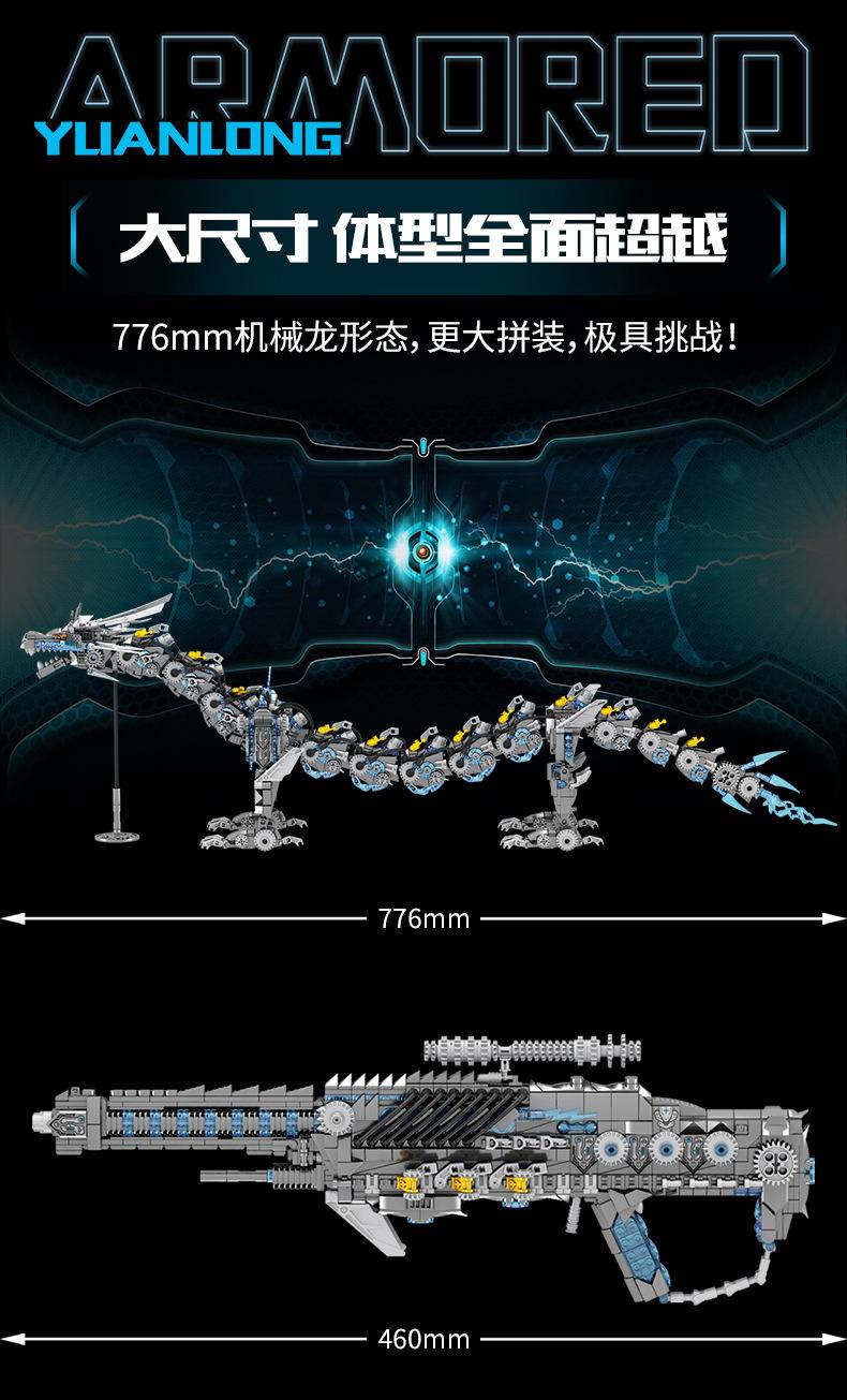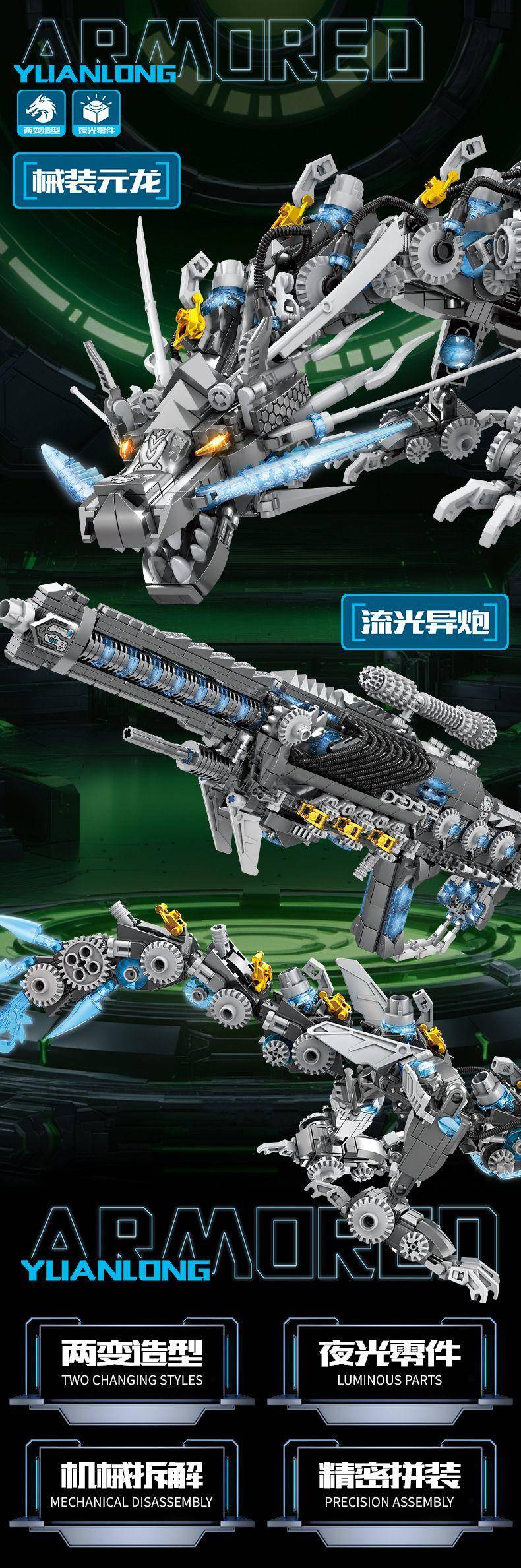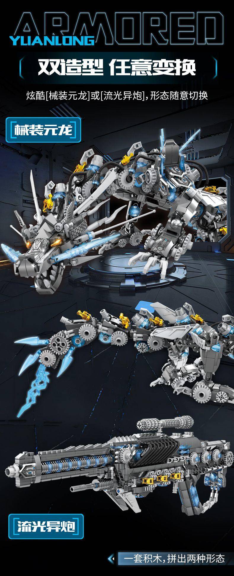 械装元龙、流光异炮 双形态属于主题系列系列积木套组,整个套组包含 1390 个积木颗粒。首发于2024年。