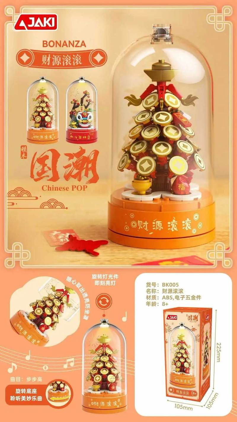 国潮醒狮:财源滚滚音乐盒属于中国传统节日系列积木套组。首发于2024年。