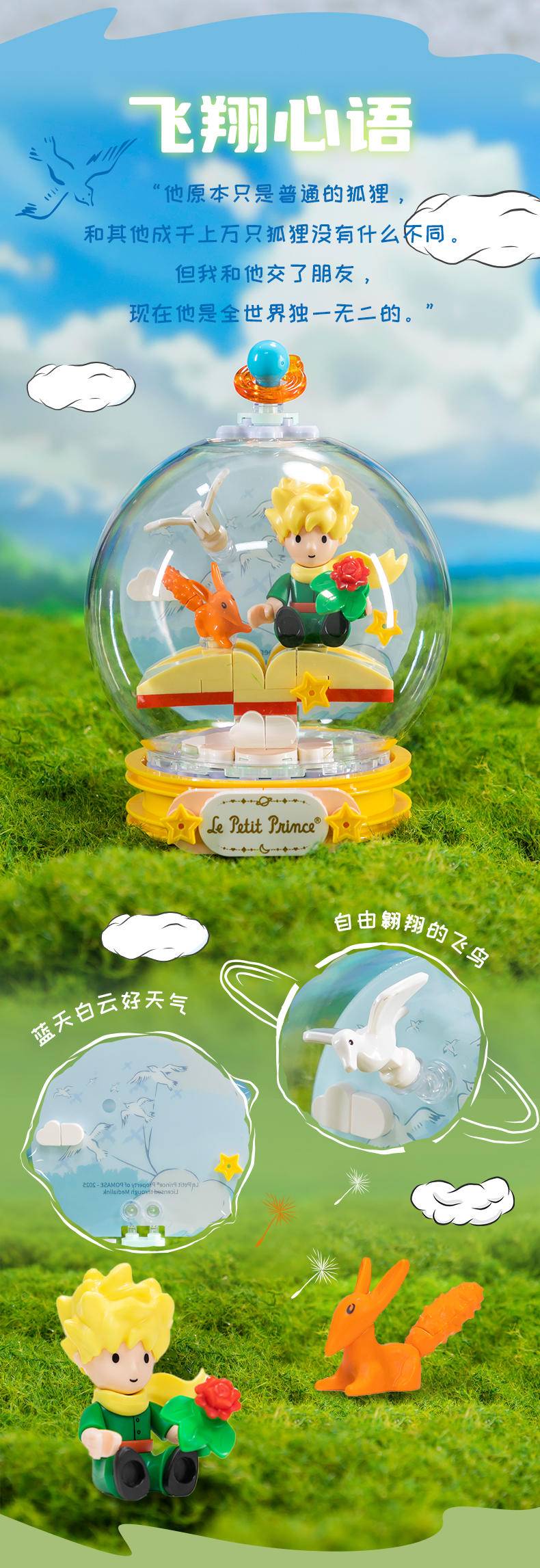 小王子水晶球:飞翔心语属于主题系列系列积木套组,整个套组包含 300 个积木颗粒。首发于2024年。
