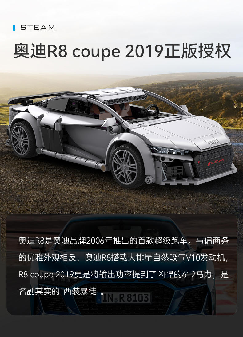 【积木小站】奥迪 R8 Coupe 2019 跑车 1:14