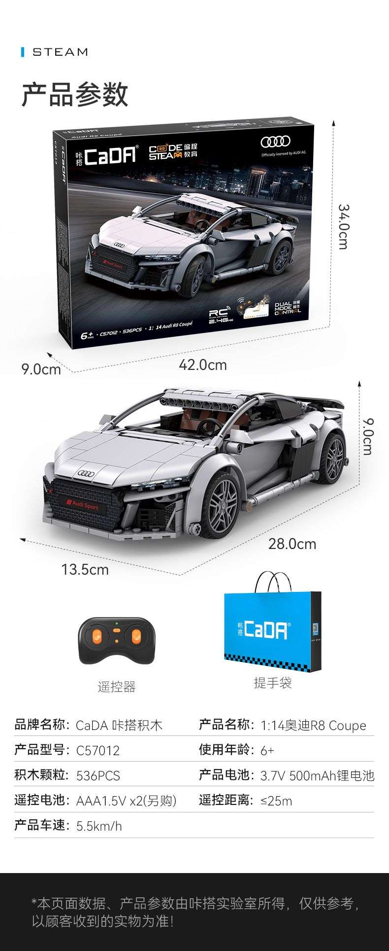 奥迪 R8 Coupe 2019 跑车 1:14(Audi R8 Coupe 2019)(咔搭CaDA/双鹰DoubleE C57012)