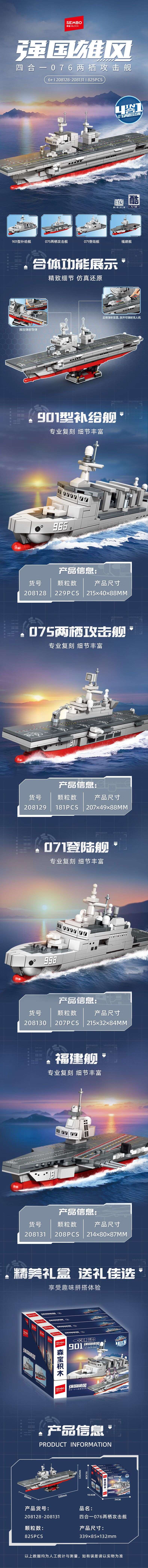 076两栖攻击舰 4款 901型补给舰、075两栖攻击舰、071登陆舰、福建舰(森宝SEMBO 208128、森宝SEMBO 208129、森宝SEMBO 208130、森宝SEMBO 208131)