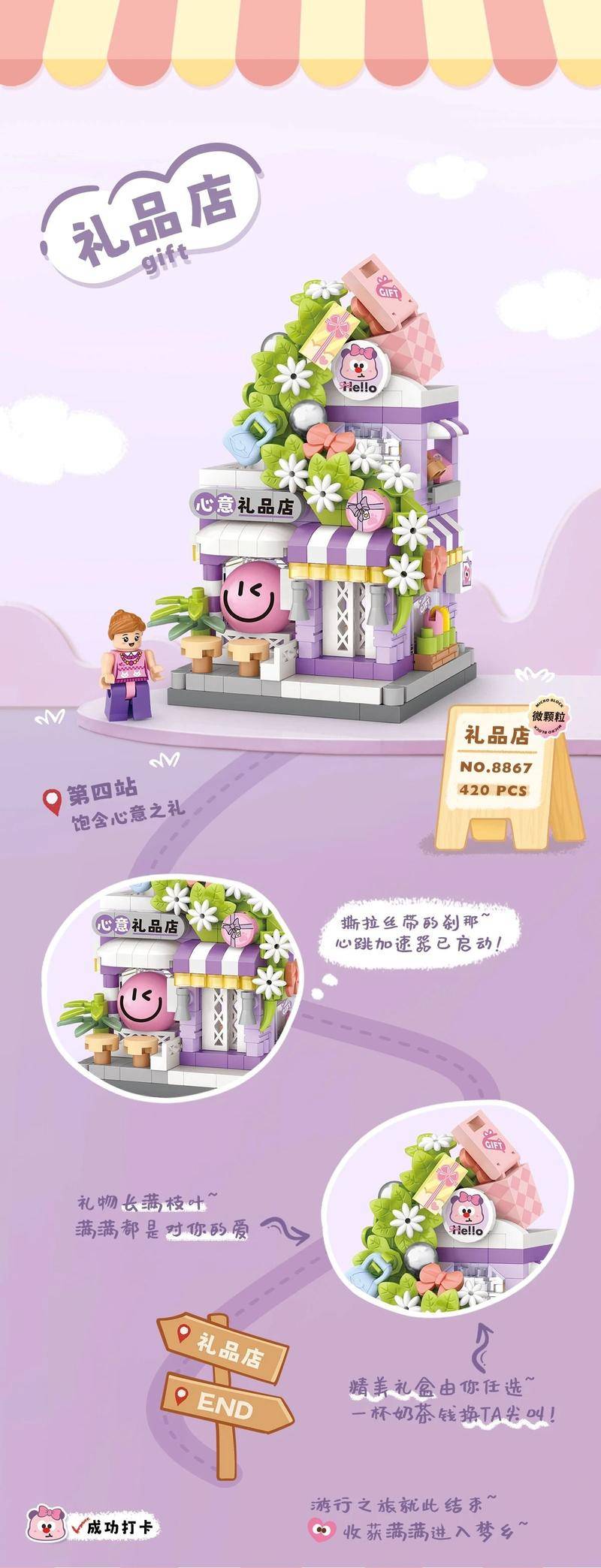 礼品店属于主题系列系列积木套组,整个套组包含 420 个积木颗粒。首发于2025年。