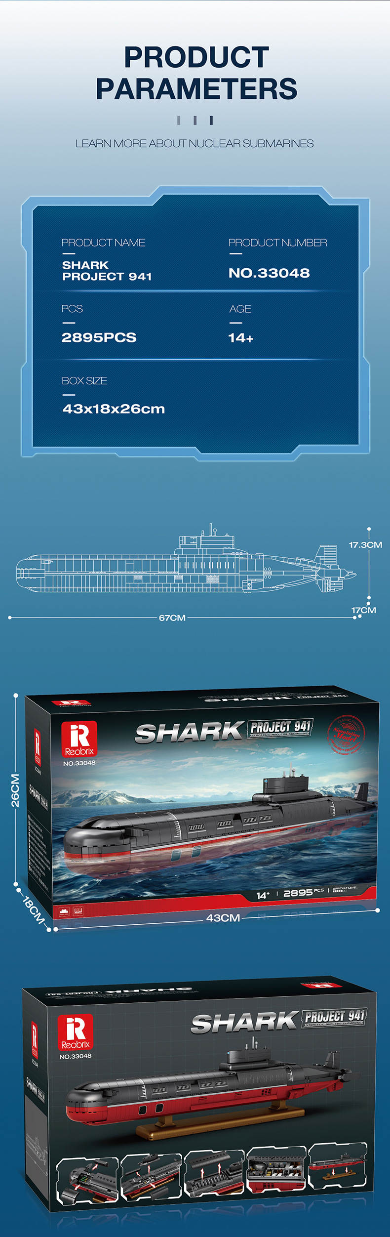 台风级潜艇(Shark Project 941)属于军事系列积木套组,整个套组包含 2895 个积木颗粒。首发于2025年。