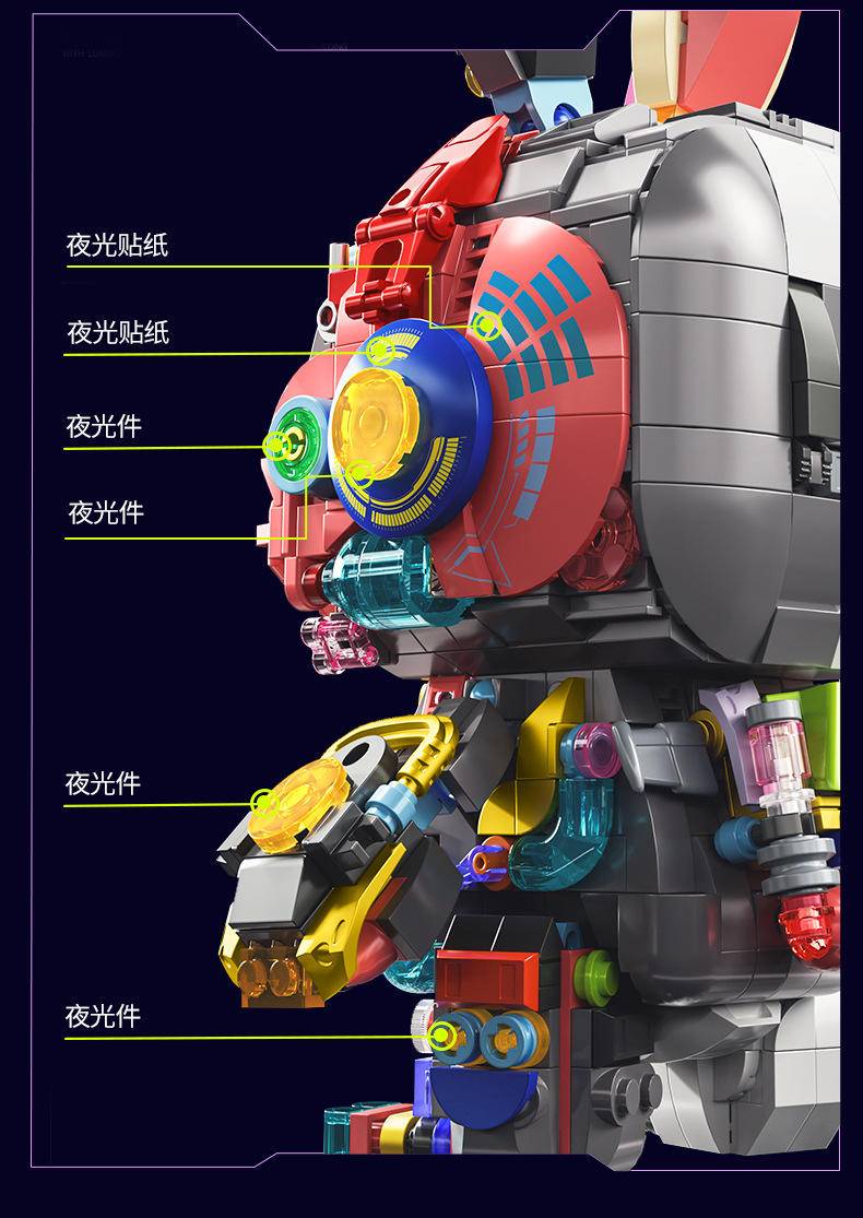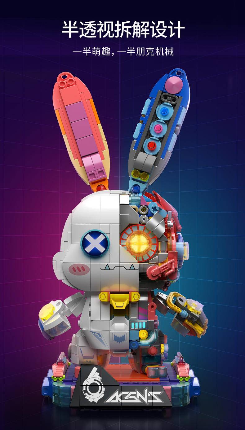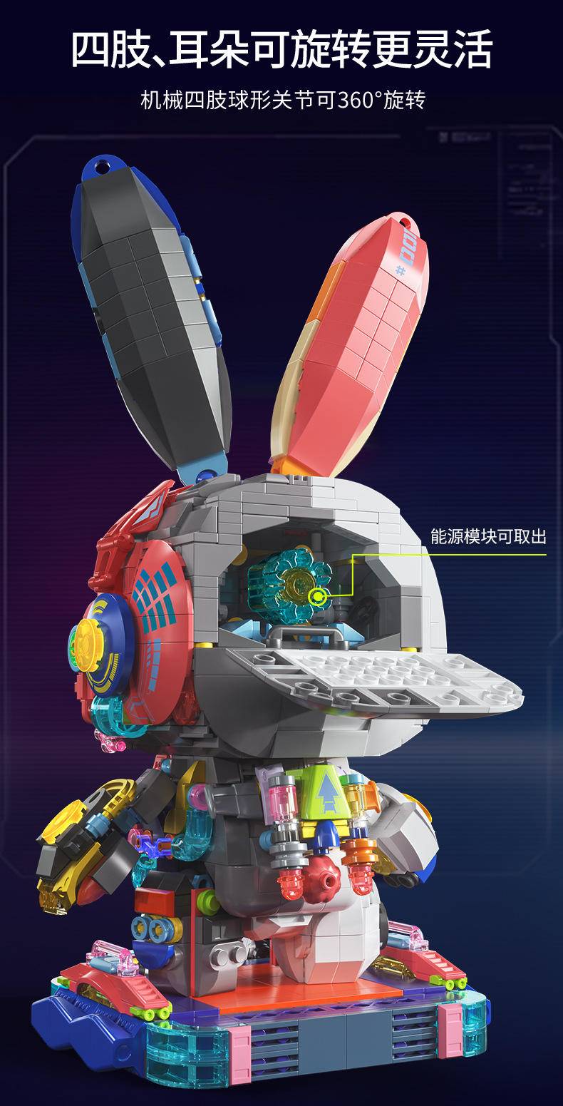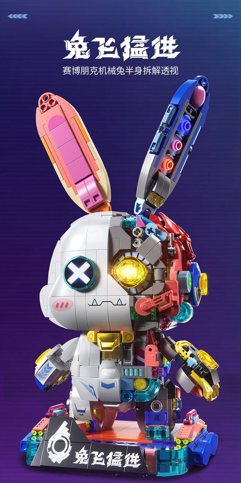 赛博朋克机械兔半身拆解透视 兔飞猛进(Mechanie Rabbit)属于主题系列系列积木套组,整个套组包含 1377 个积木颗粒。首发于2025年。