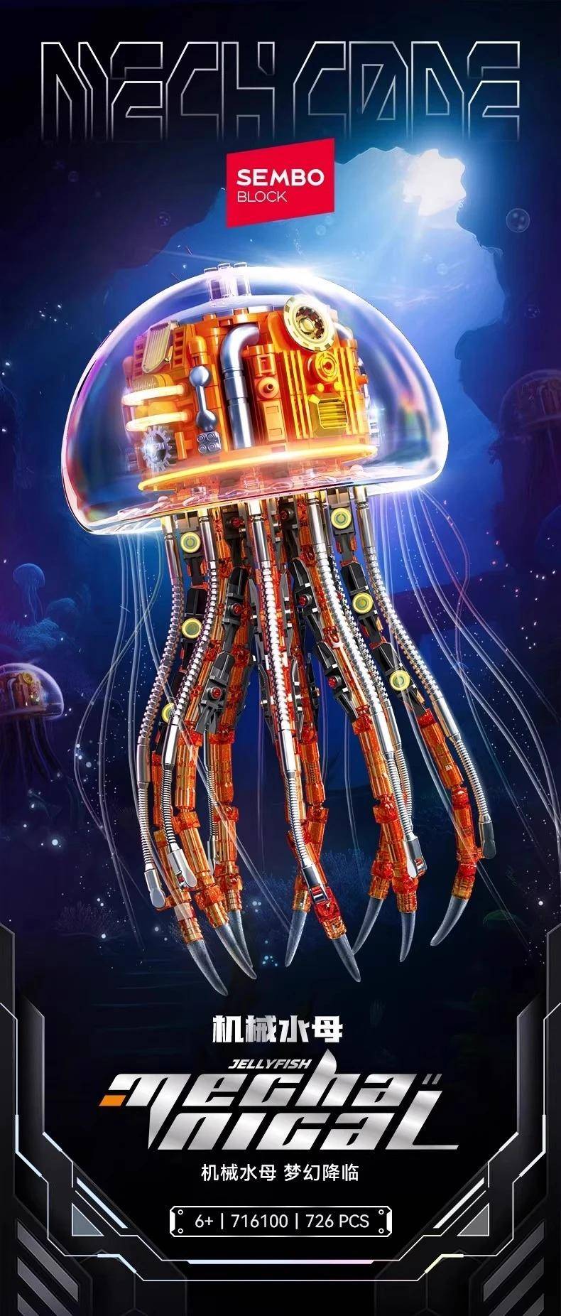 积械密码:机械水母属于科技系列积木套组,整个套组包含 726 个积木颗粒。首发于2025年。