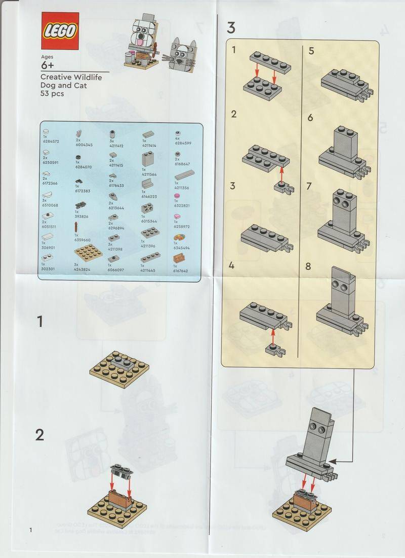 野猫野狗(Creative Wildlife Dog and Cat)属于创意百变系列积木套组,整个套组包含 53 个积木颗粒。乐高LEGO 6595892 首发于2025年。