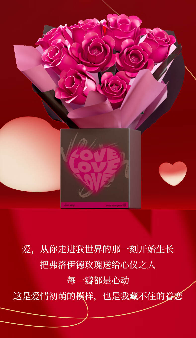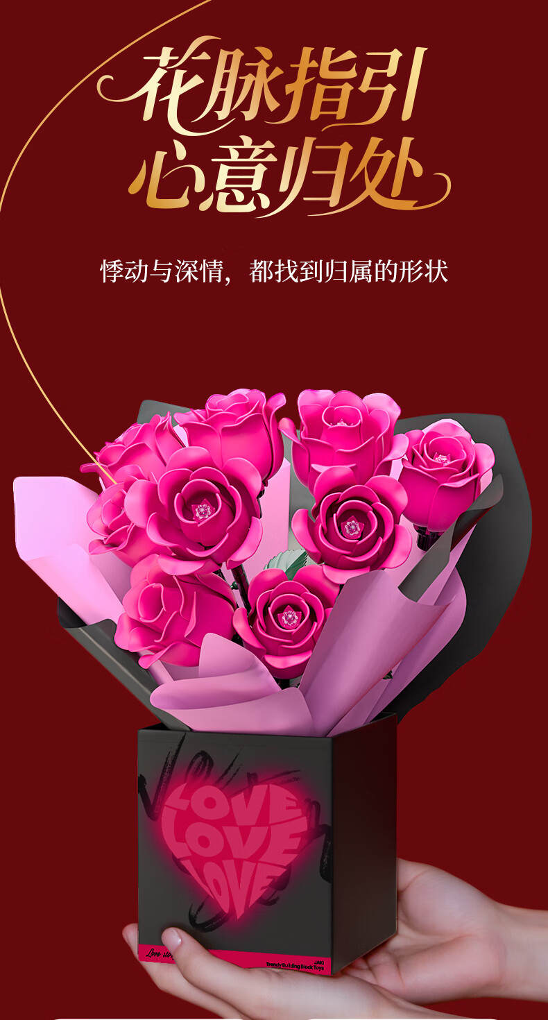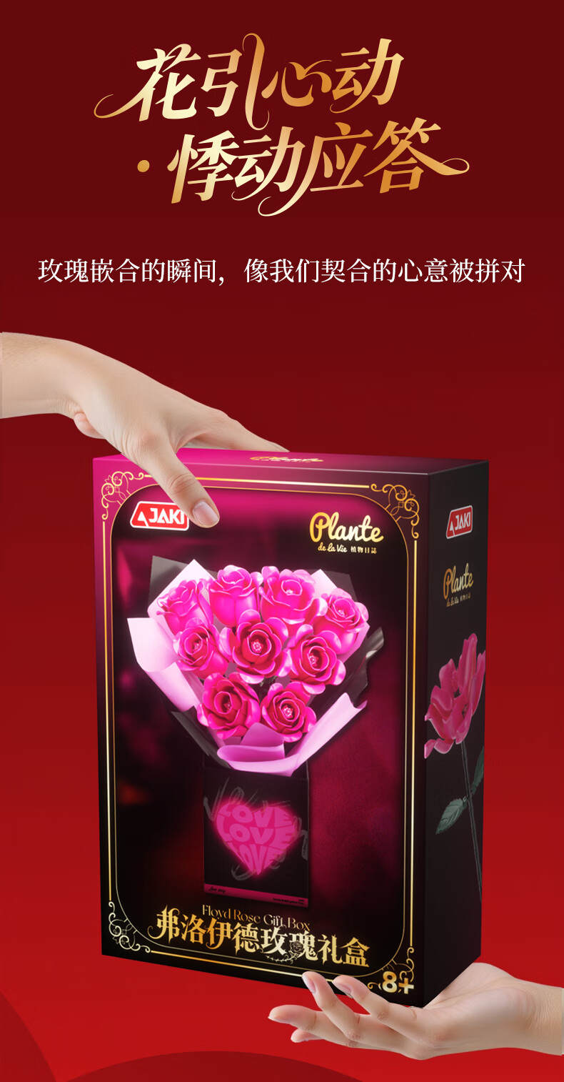 弗洛伊德玫瑰九支装(Floyd Rose Gift Box)属于花卉植物系列积木套组,整个套组包含 612 个积木颗粒。首发于2025年。