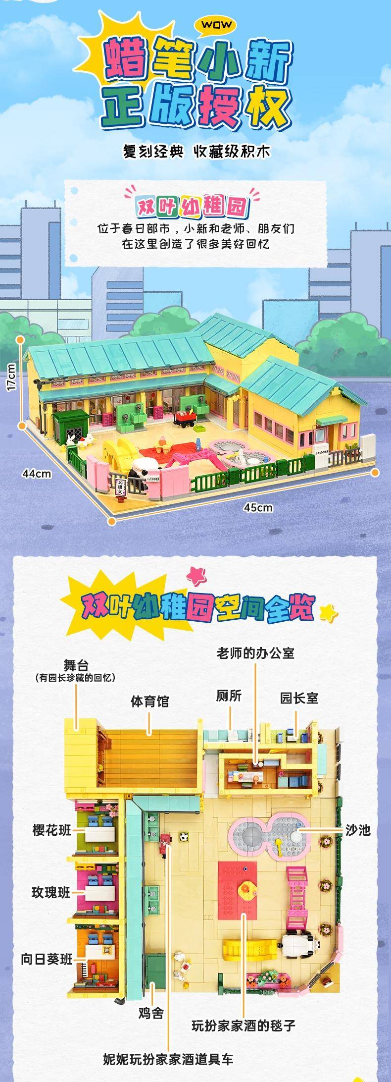 蜡笔小新:双叶幼稚园 典藏款属于影视游戏系列积木套组,整个套组包含 3300 个积木颗粒。首发于2025年。