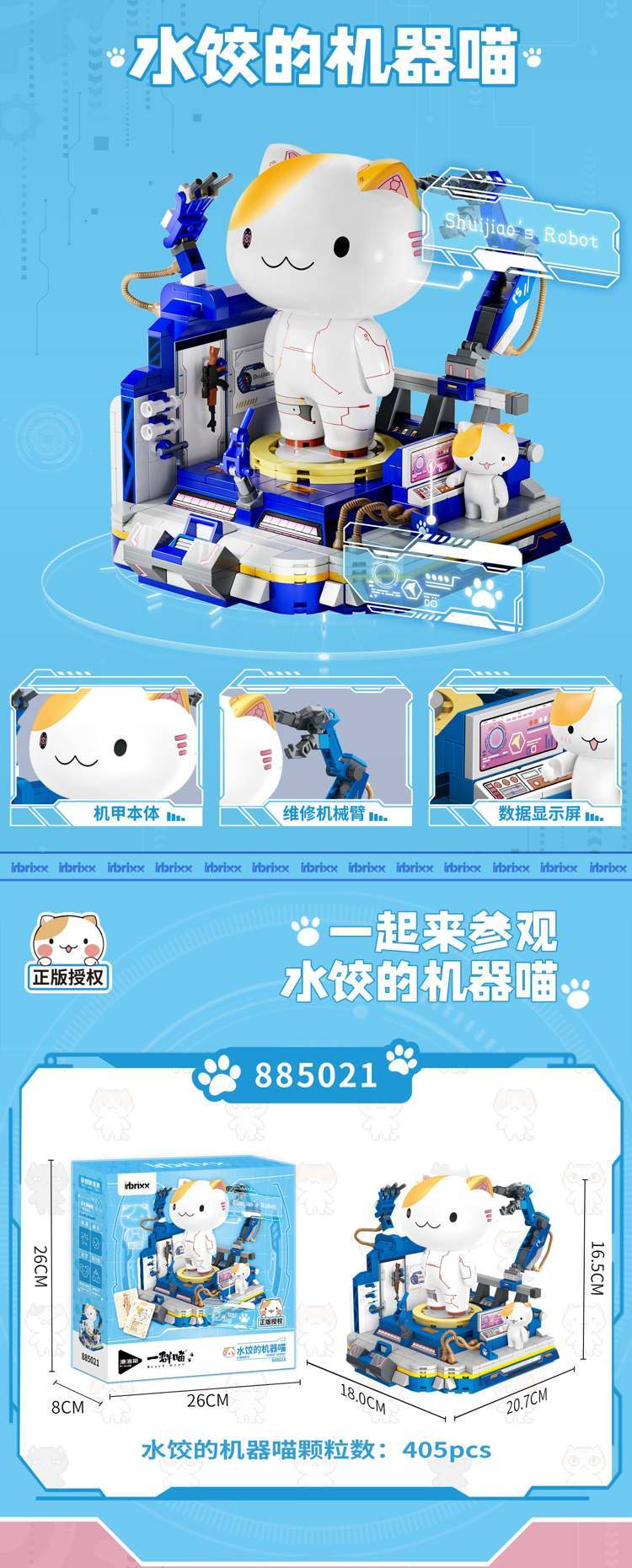 一群喵机器喵:水饺的机器喵属于影视游戏系列积木套组,整个套组包含 405 个积木颗粒。首发于2025年。