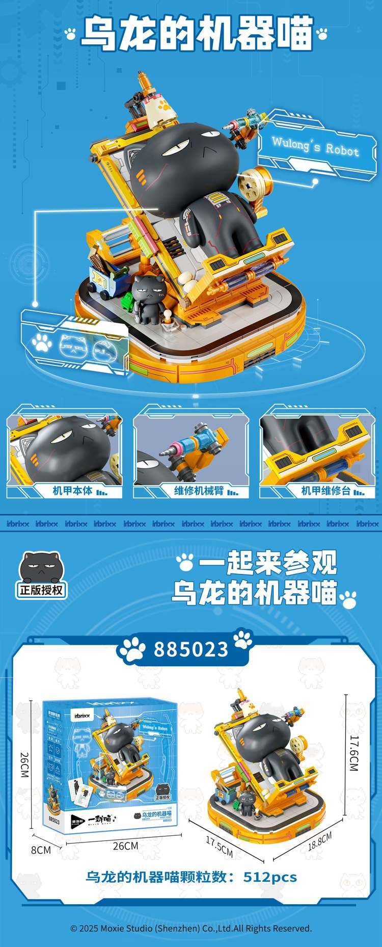 一群喵机器喵:乌龙的机器喵属于影视游戏系列积木套组,整个套组包含 512 个积木颗粒。首发于2025年。