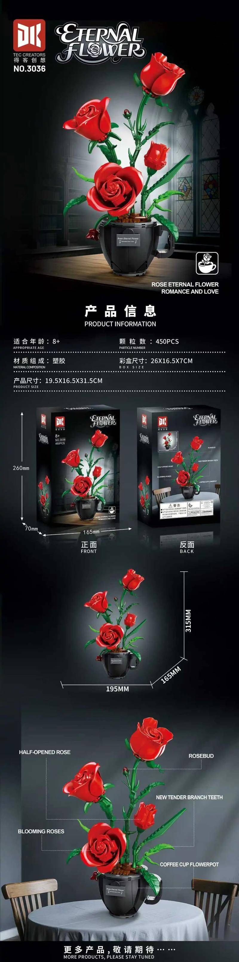 咖啡杯玫瑰属于花卉植物系列积木套组,整个套组包含 450 个积木颗粒。首发于2025年。