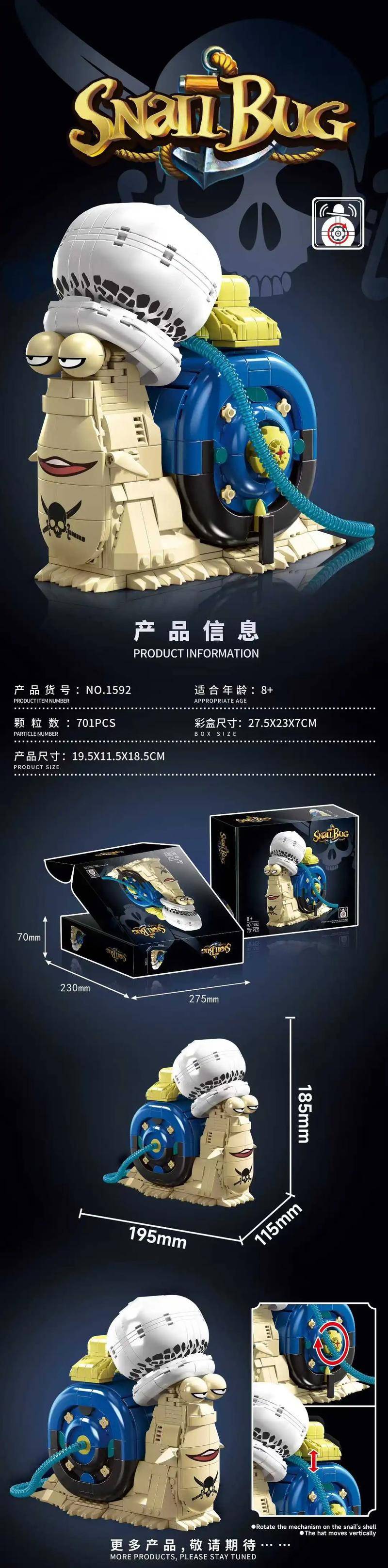 海贼王:罗电话虫(Snan Bug)属于影视游戏系列积木套组,整个套组包含 701 个积木颗粒。首发于2025年。