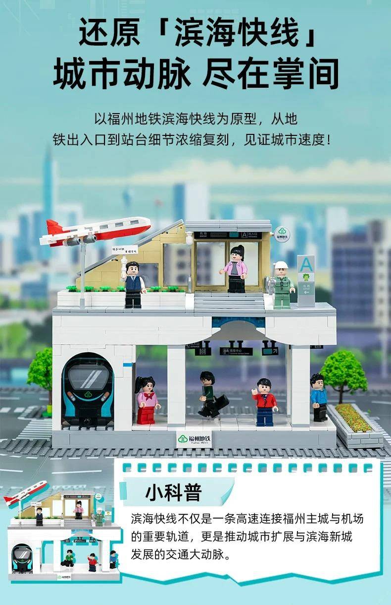 福州地铁 滨海快线属于城市系列积木套组,整个套组包含 600 个积木颗粒。首发于2025年。