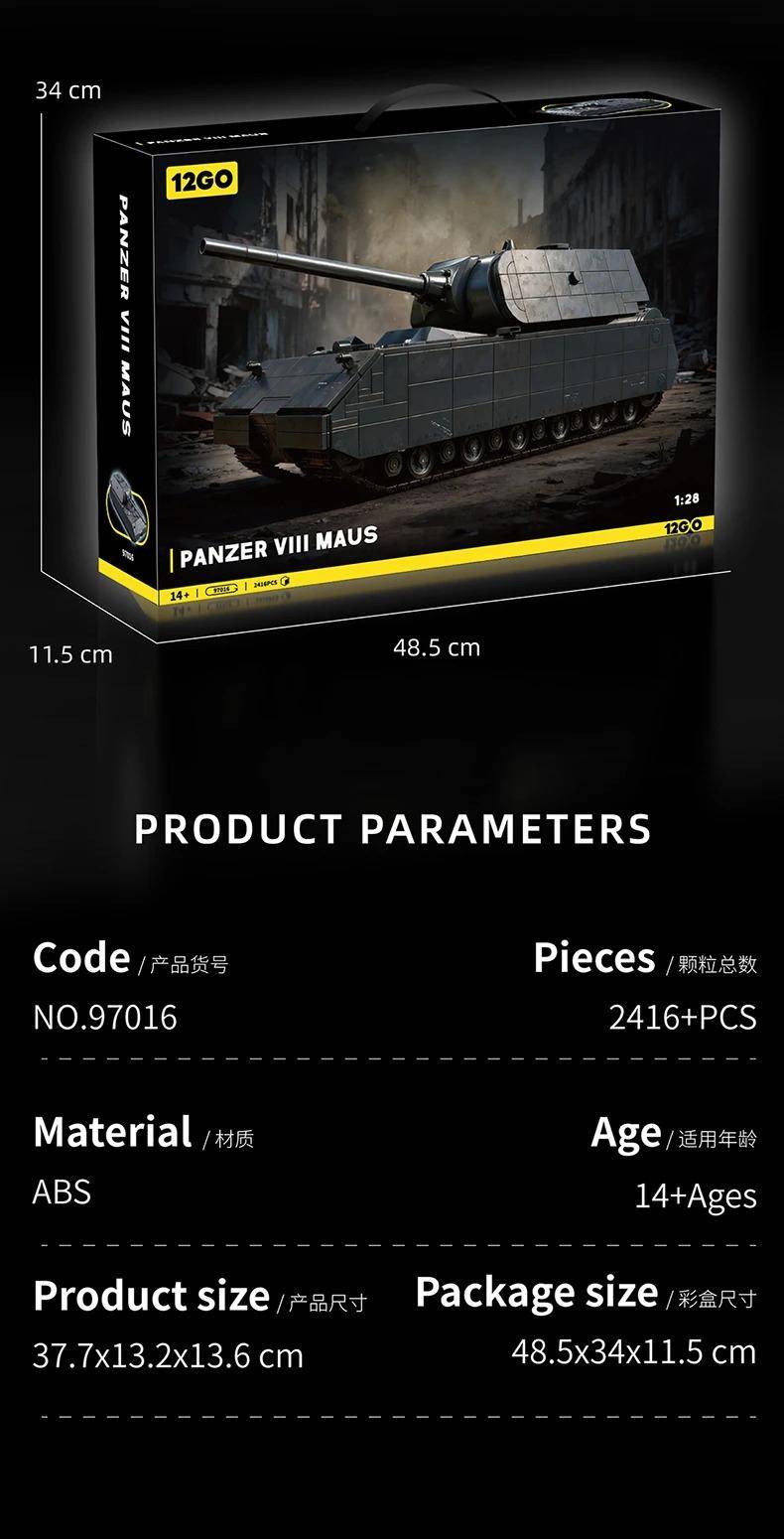 鼠式超重型坦克 1:28(Panzer VII Maus)属于军事系列积木套组,整个套组包含 2416 个积木颗粒。首发于2025年。