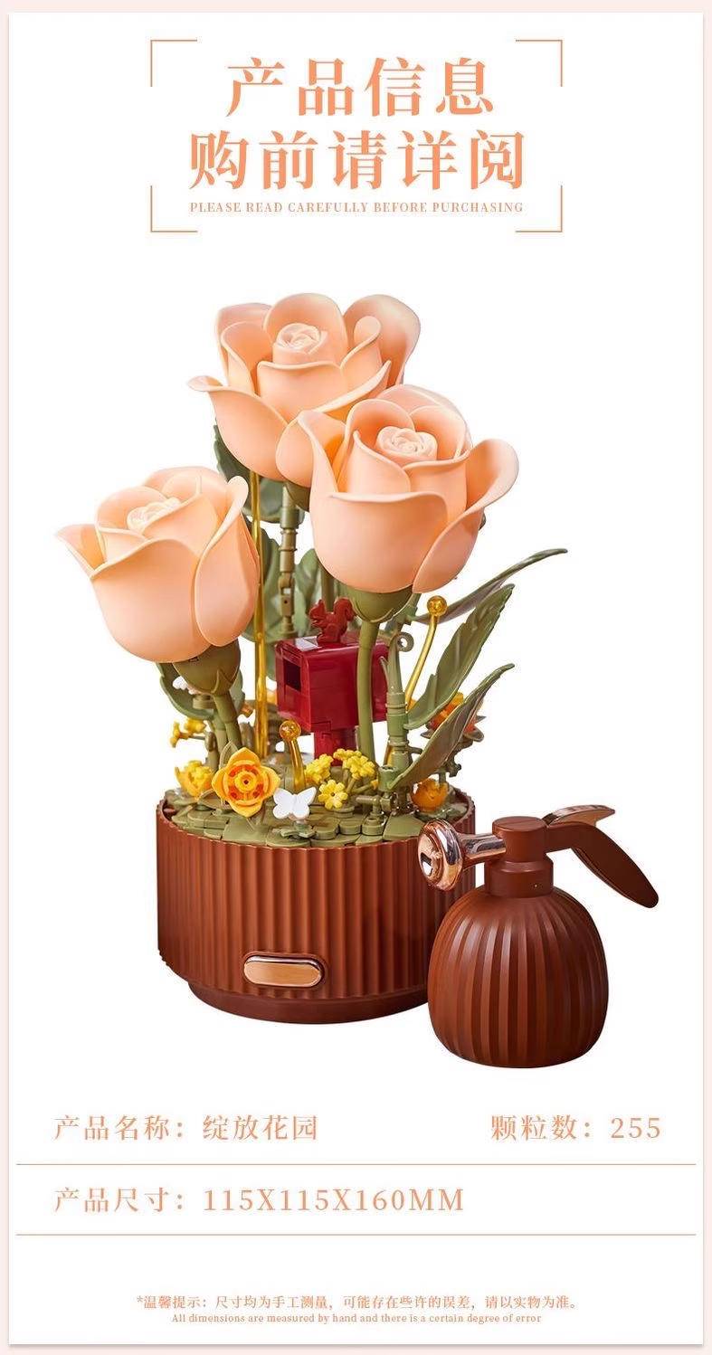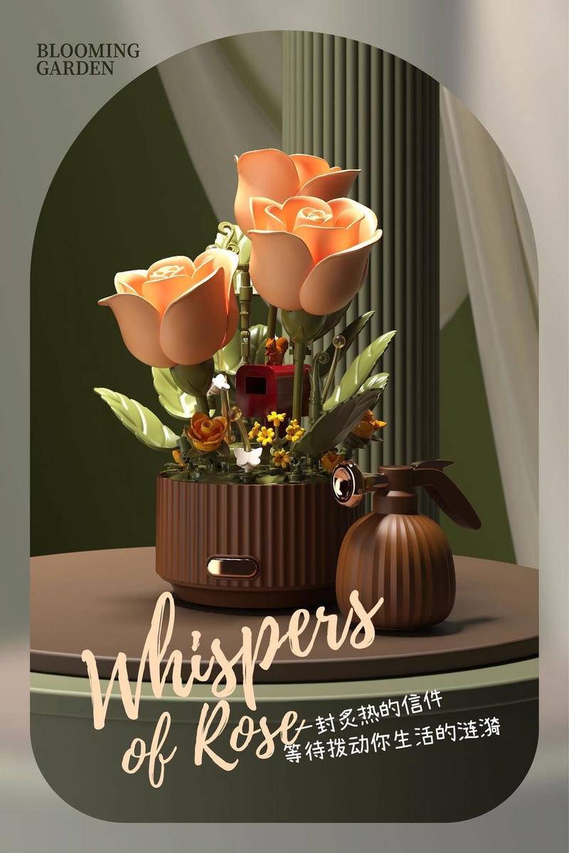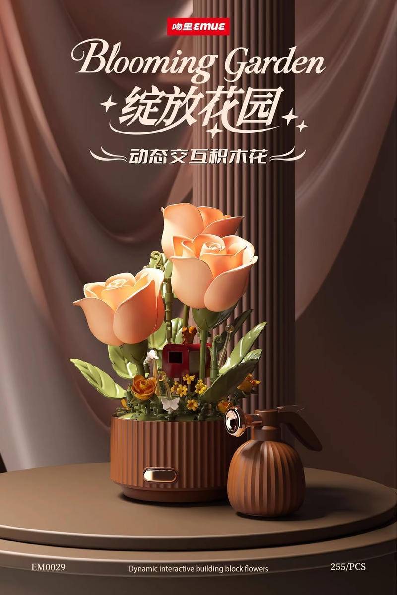 绽放花园 自动开合花(Blooming Garden Whispers of Rose)属于花卉植物系列积木套组,整个套组包含 255 个积木颗粒。首发于2025年。