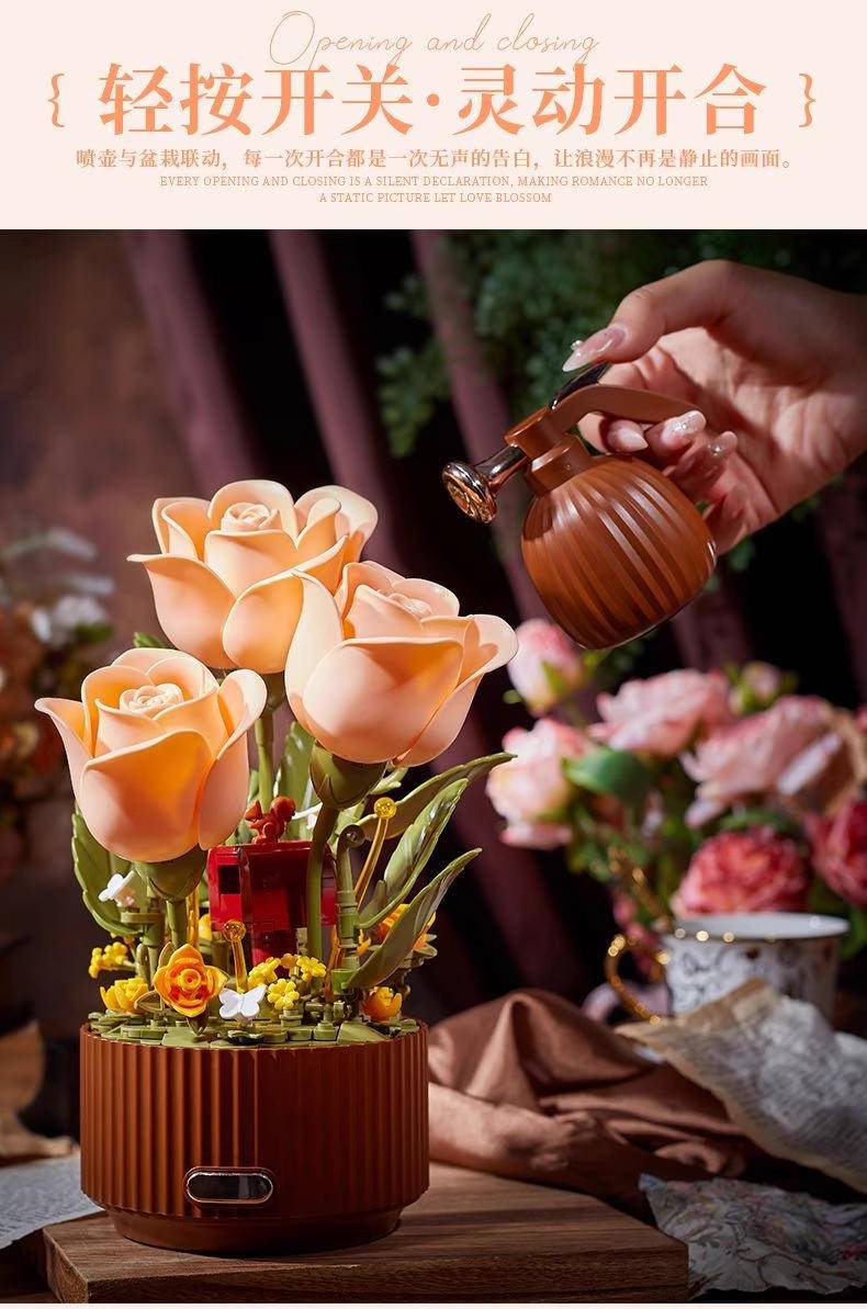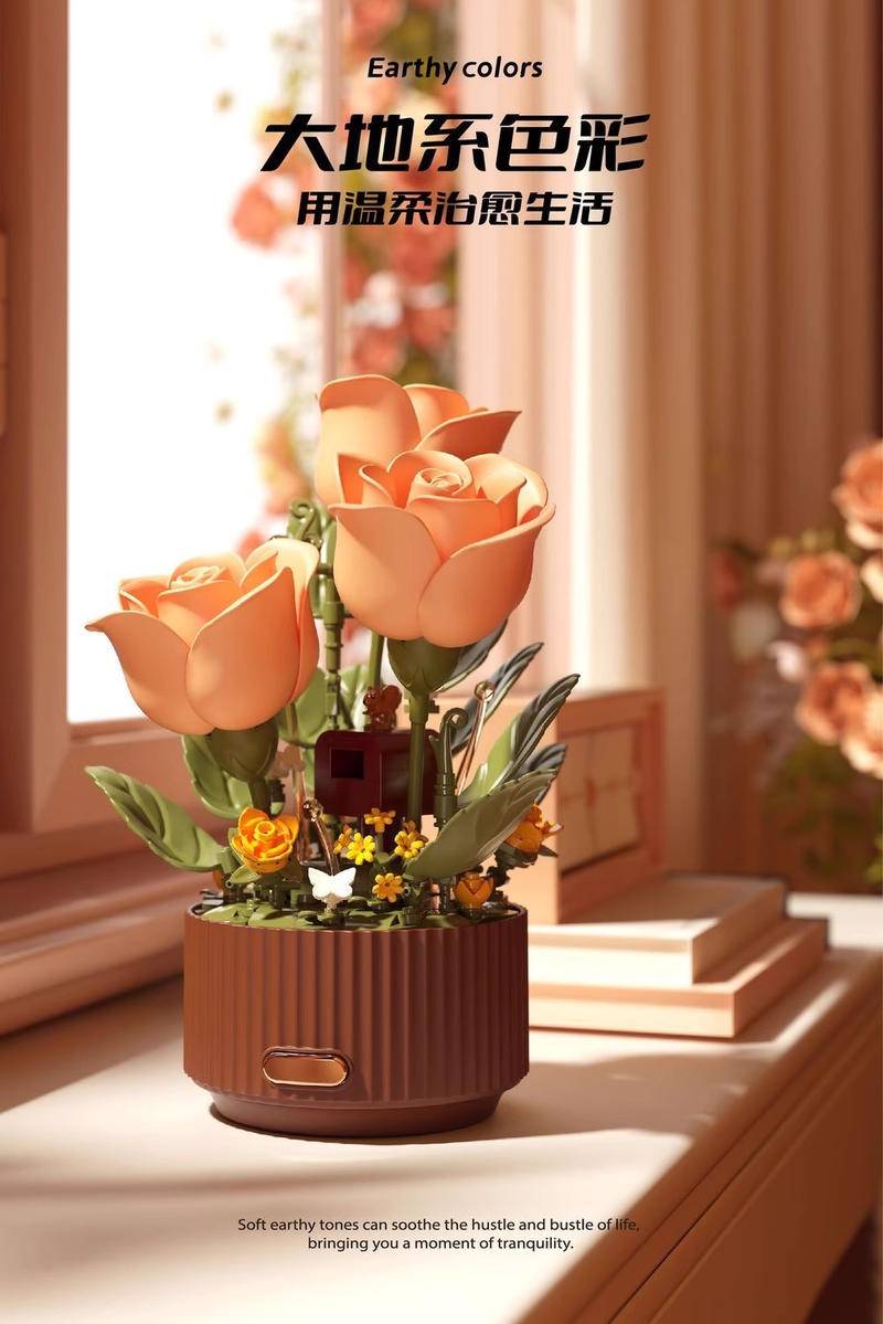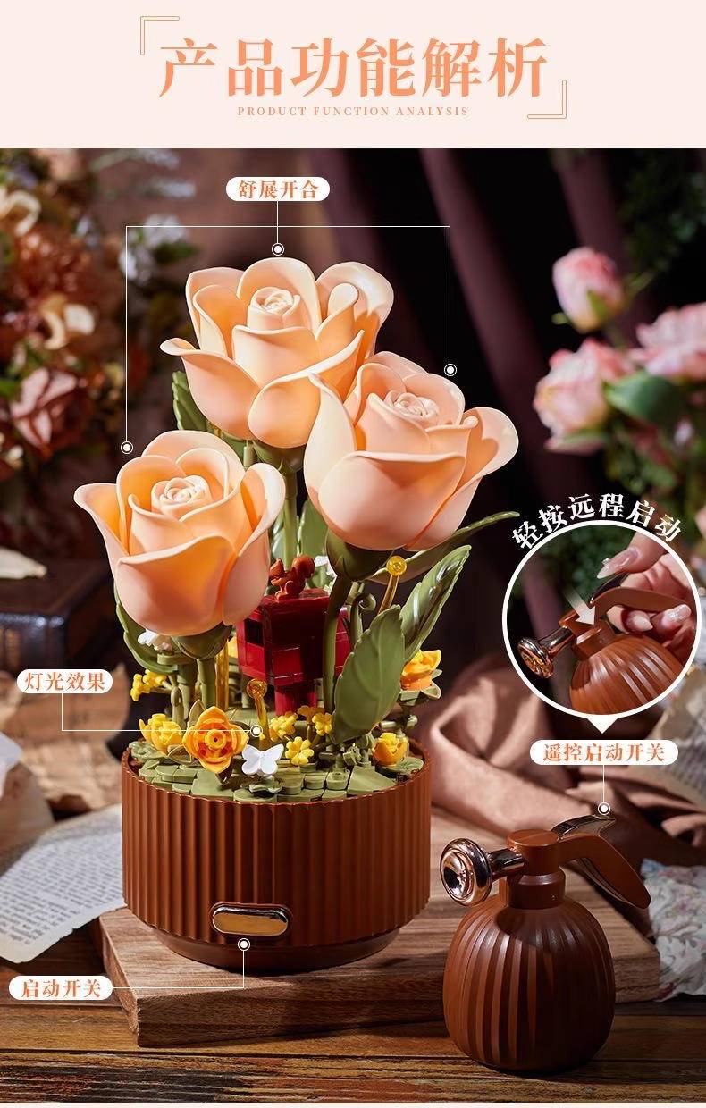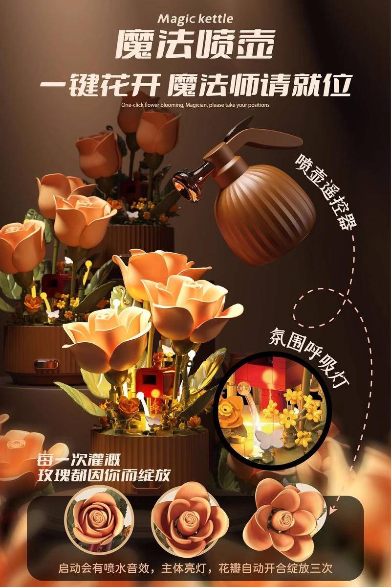 绽放花园 自动开合花(Blooming Garden Whispers of Rose)属于花卉植物系列积木套组,整个套组包含 255 个积木颗粒。首发于2025年。