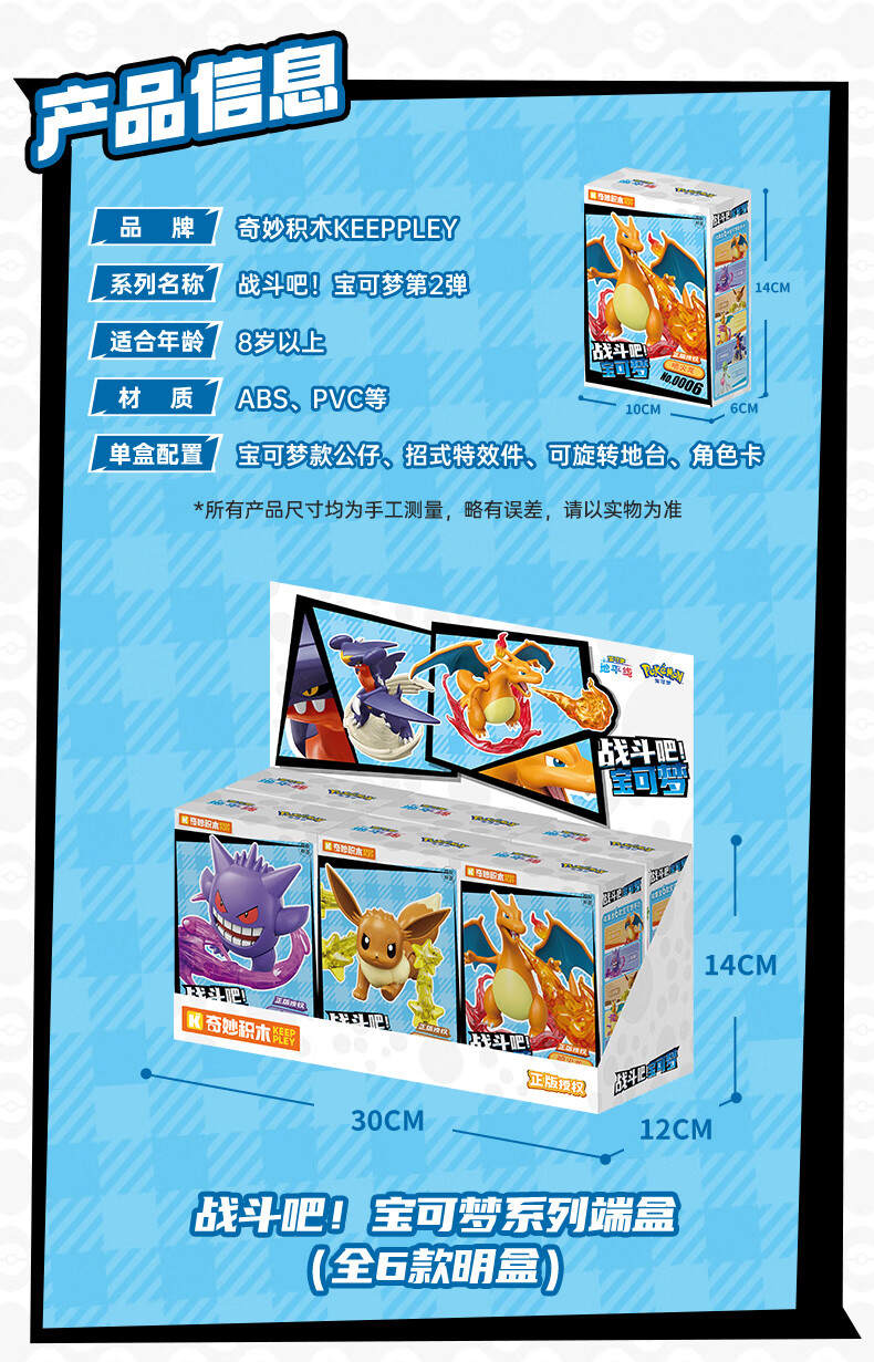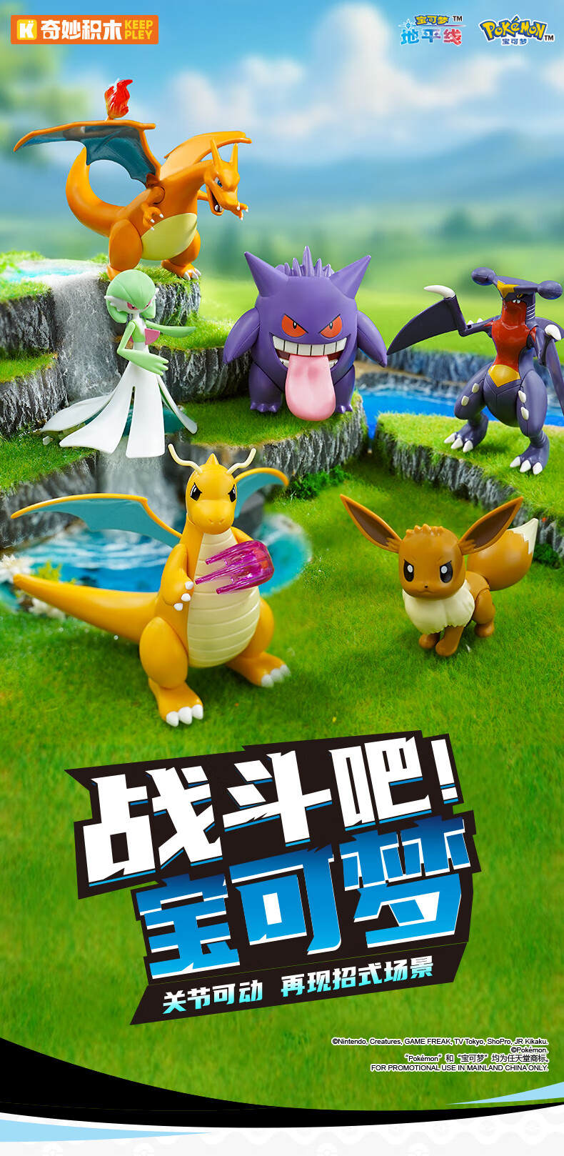 战斗吧!宝可梦第二弹 6款 耿鬼、伊布、喷火龙、快龙、烈咬陆鲨、沙奈朵(启蒙QMAN/ENLIGHTEN/奇妙积木Keeppley K20260)