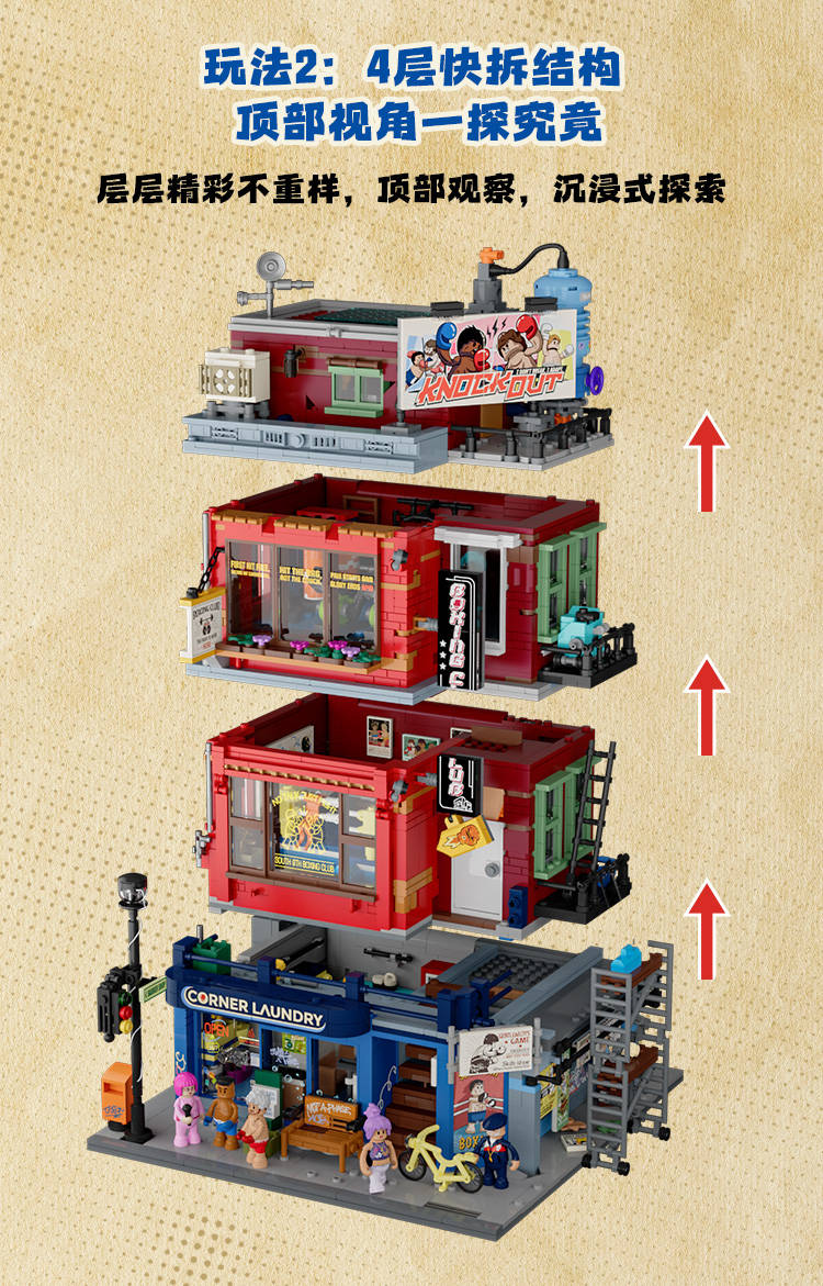 美式街头:拳击俱乐部(Boxing Club)属于街景系列积木套组,整个套组包含 3036 个积木颗粒。首发于2025年。