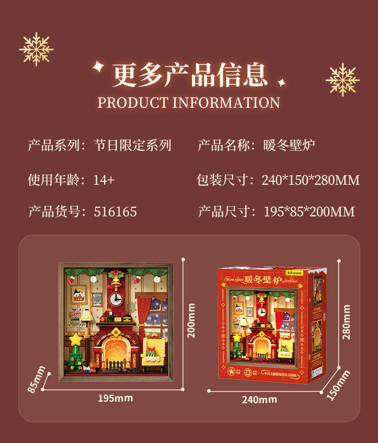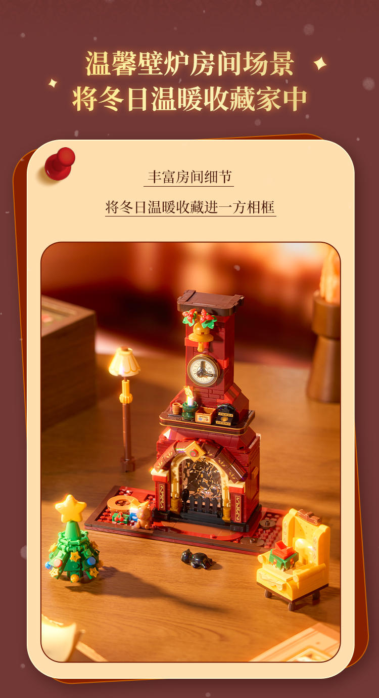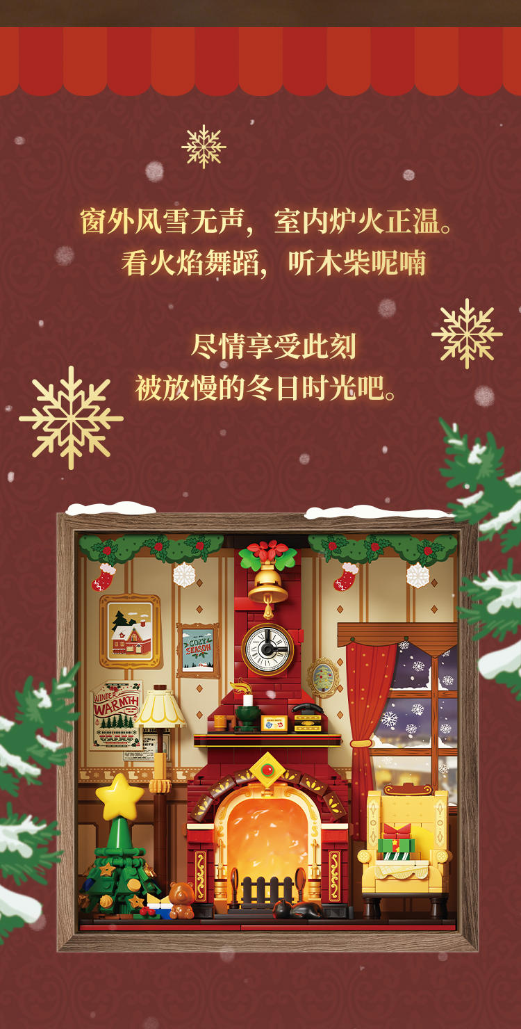 圣诞节日限定:暖冬壁炉属于圣诞节系列积木套组。首发于2025年。