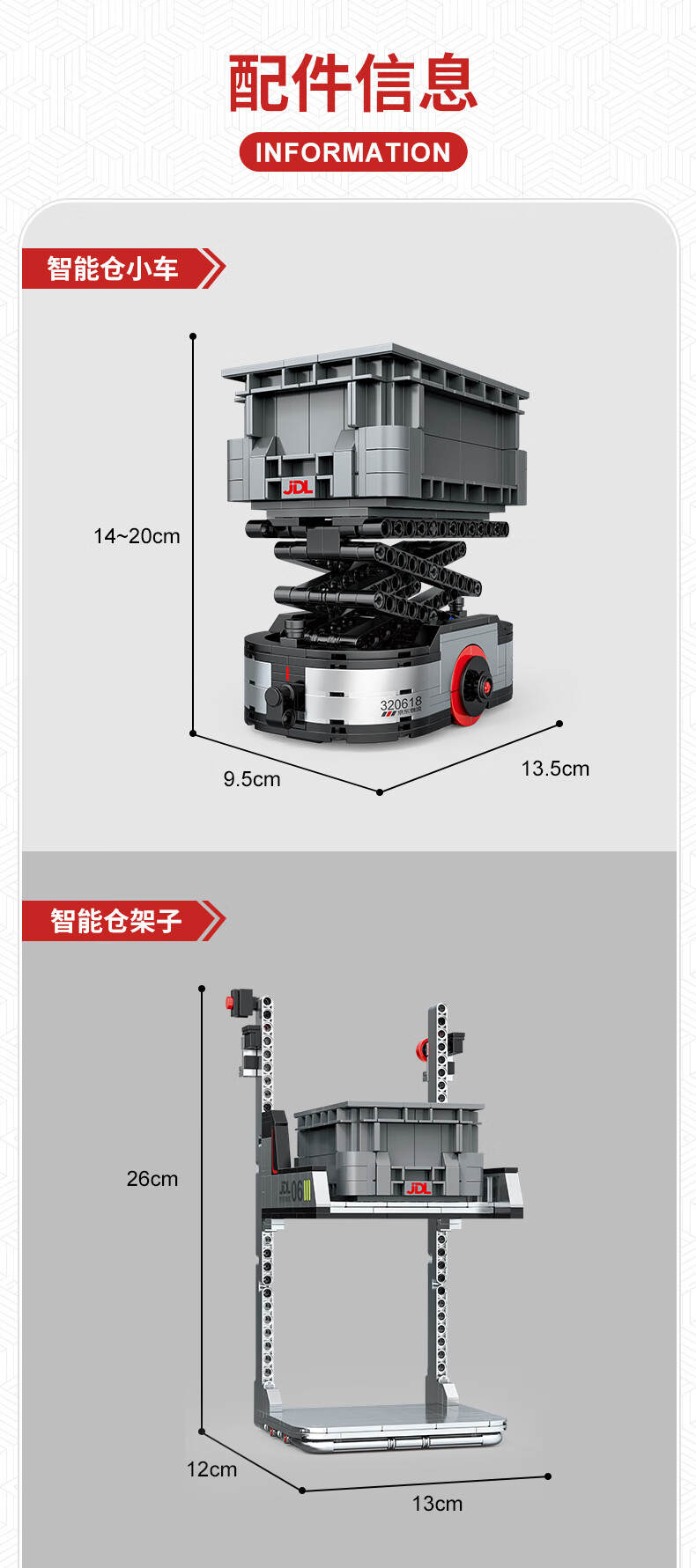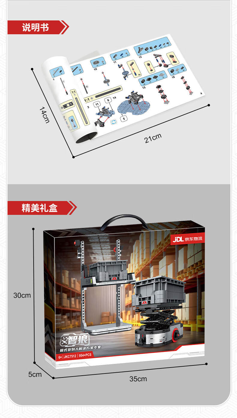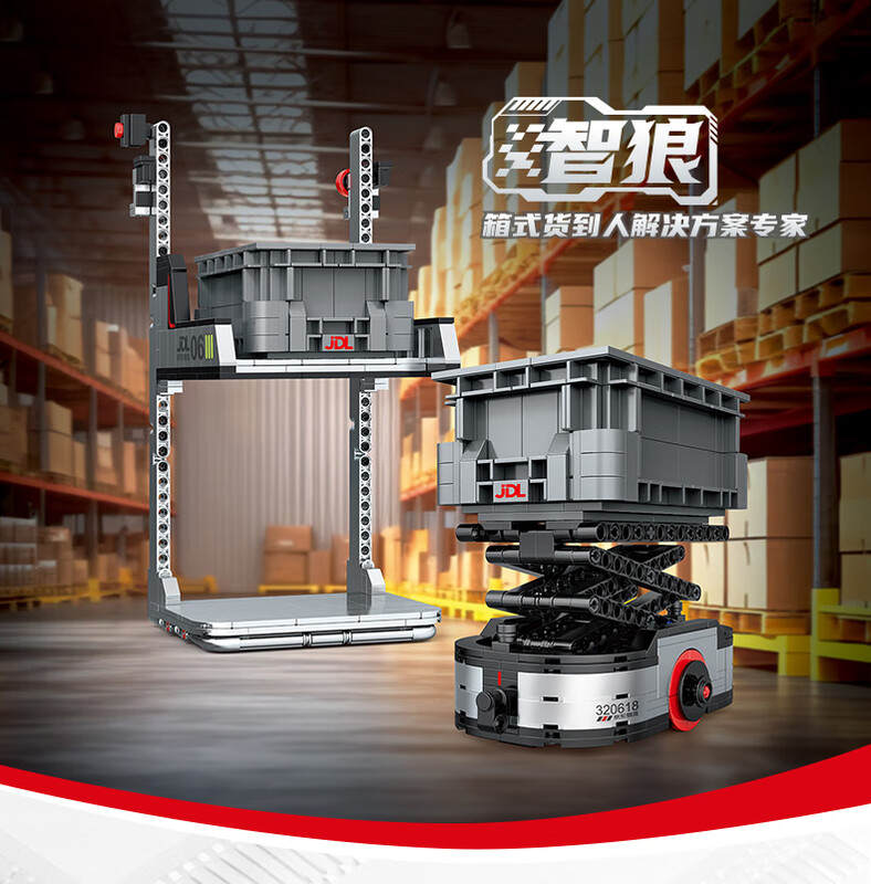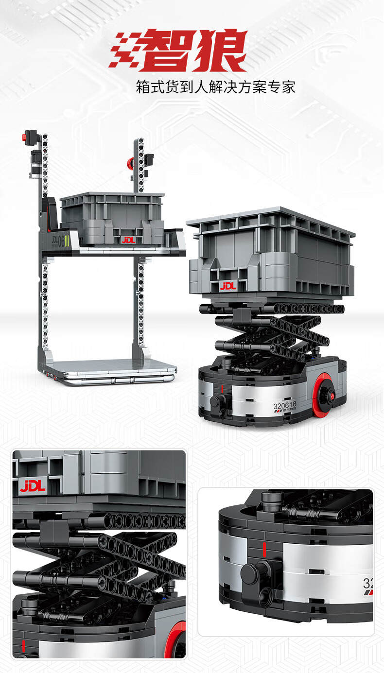 JDL 京东物流 智狼 箱式货到人解决方案专家属于机械组系列积木套组,整个套组包含 954 个积木颗粒。首发于2025年。
