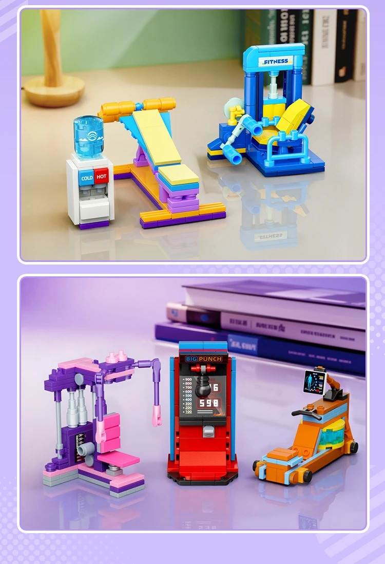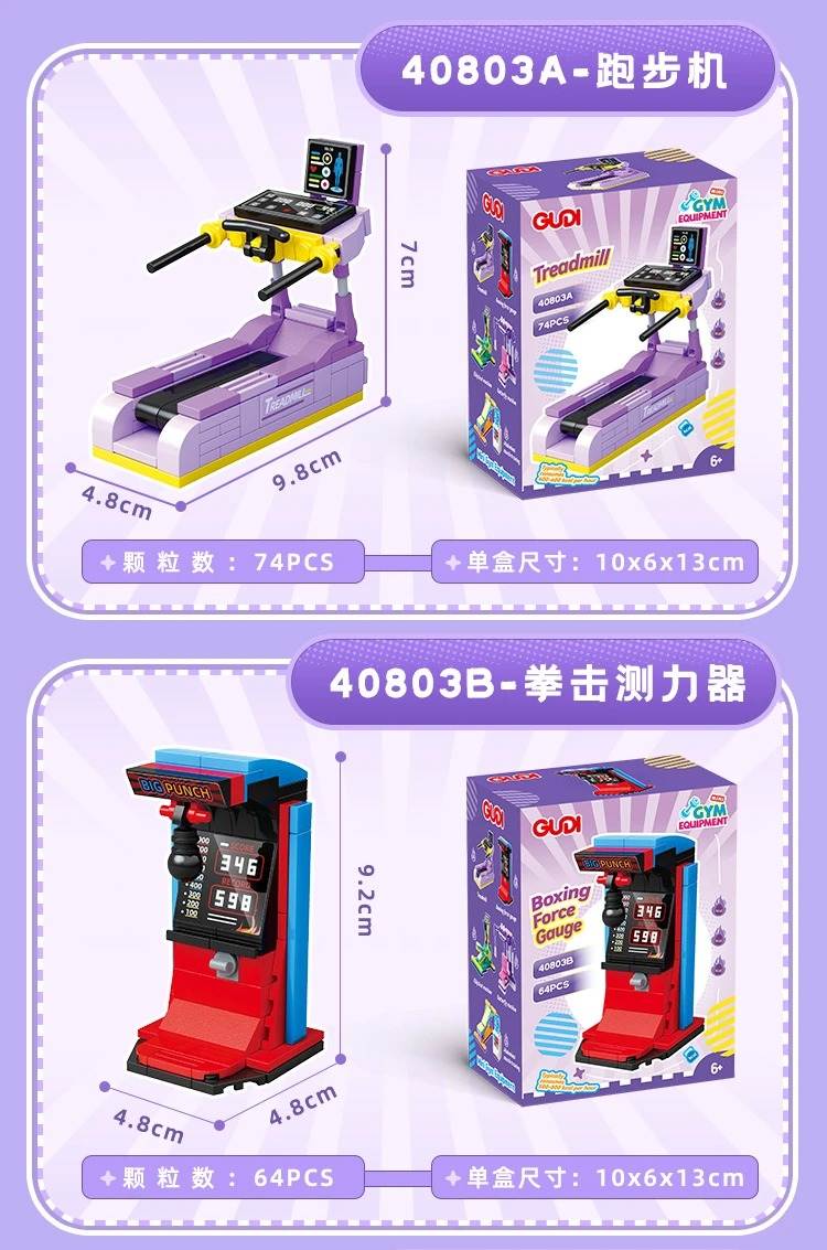 【积木小站】迷你健身器材 9款 跑步机、拳击测力器、椭圆机、腹肌训练器、蝴蝶机、动感单车、力量训练套组、腿屈伸训练器、划船机