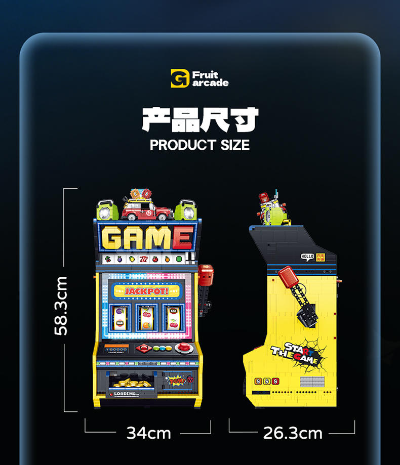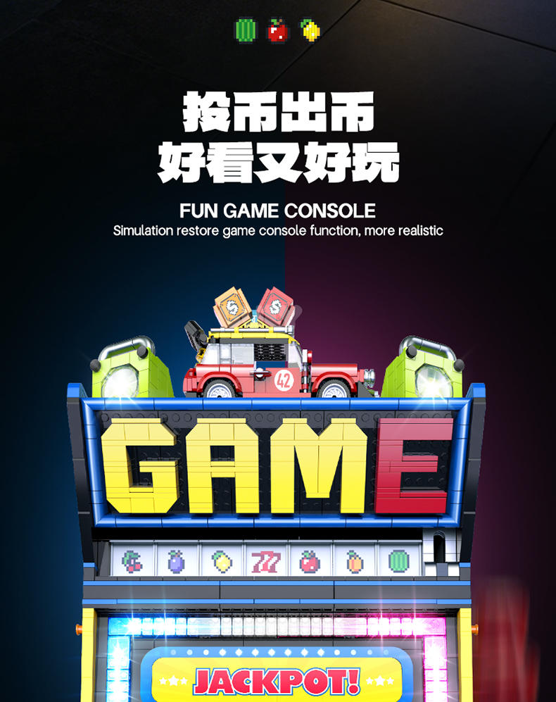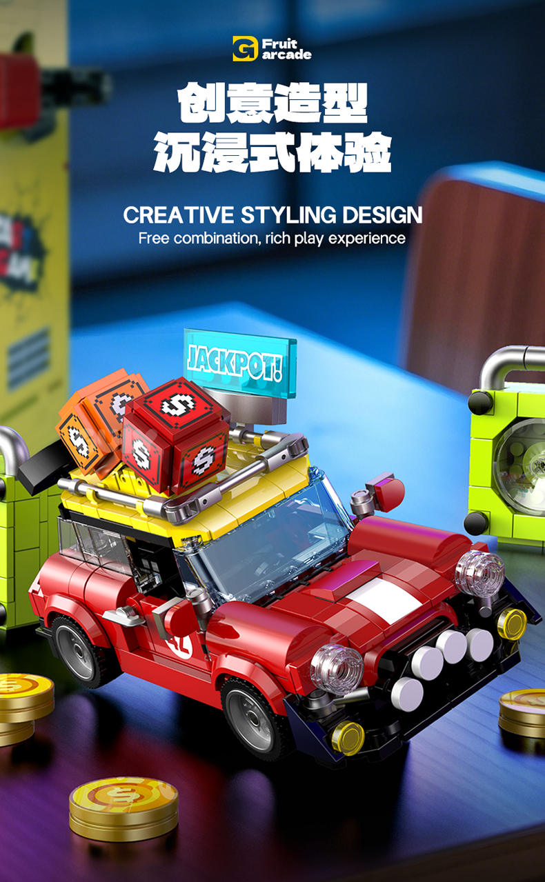 怀旧摇摇乐街机 拉霸(Creative Fruit Arcade)属于创意百变高手系列积木套组,整个套组包含 3571 个积木颗粒。首发于2025年。