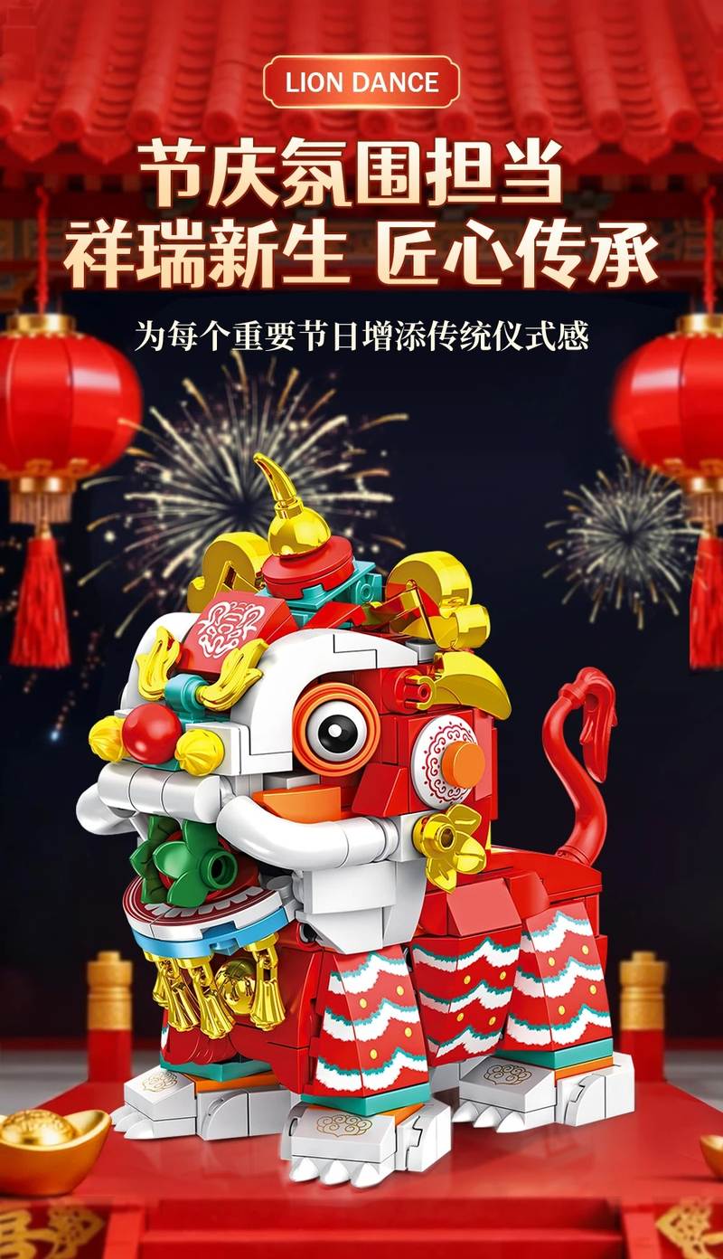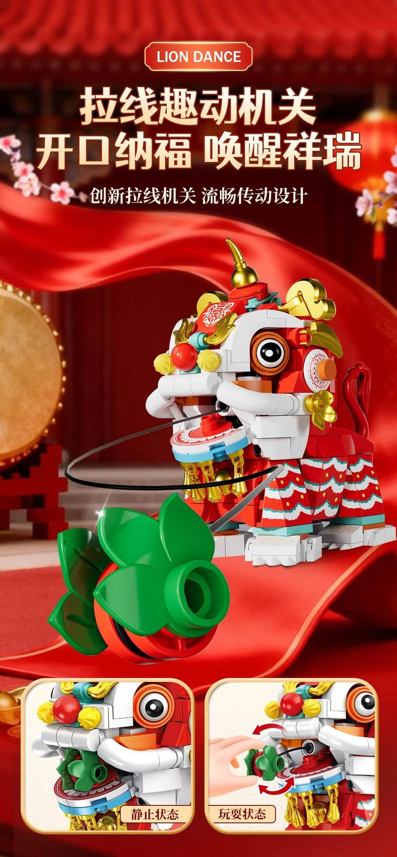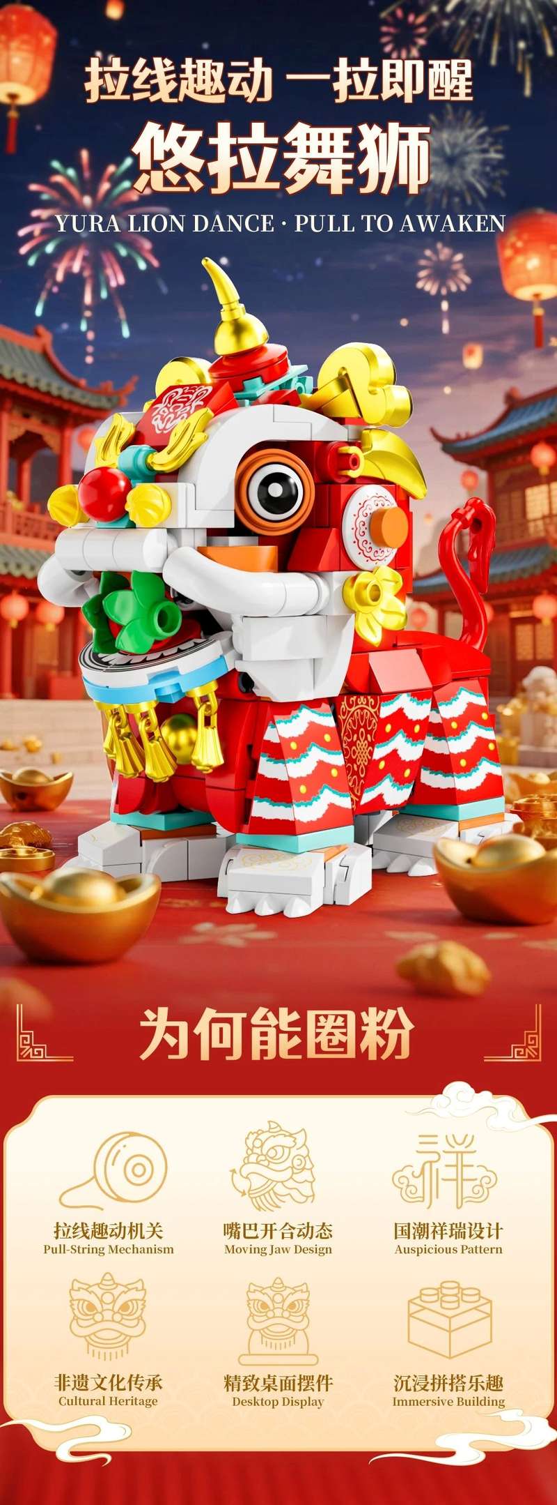 悠拉舞狮(Fun Moving Yura Lion Dance)属于中国传统节日系列积木套组,整个套组包含 317 个积木颗粒。首发于2025年。