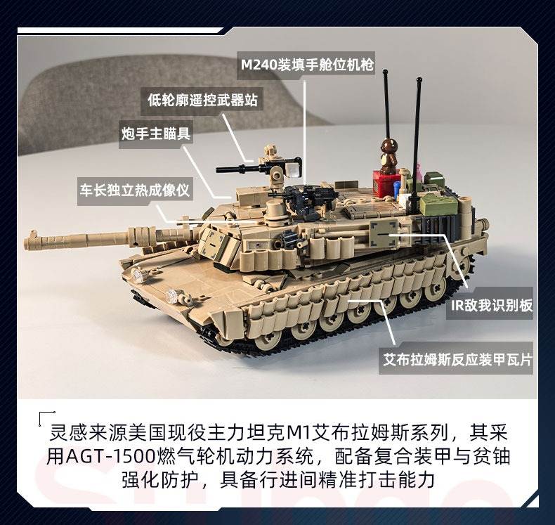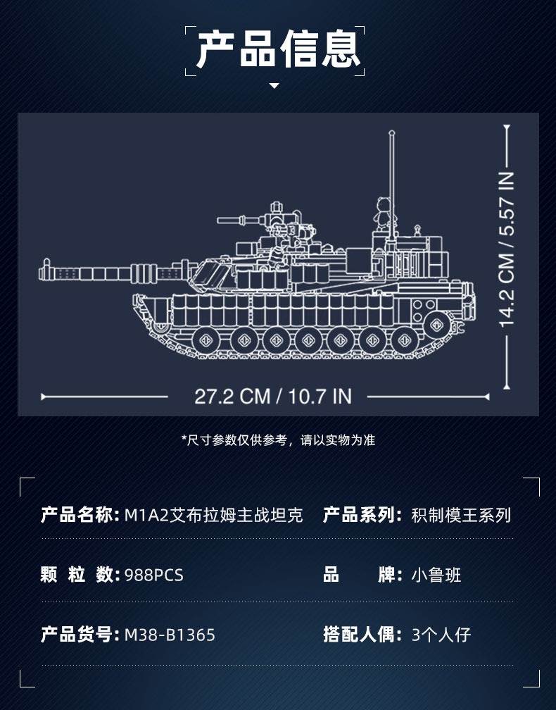 积制模王:M1A2艾布拉姆主战坦克 1:35(小鲁班Sluban M38-B1365)
