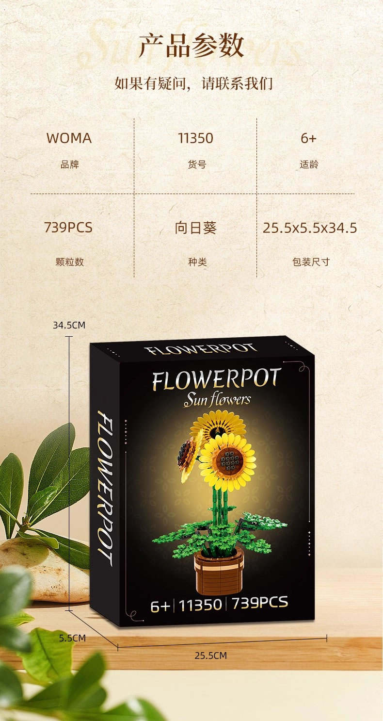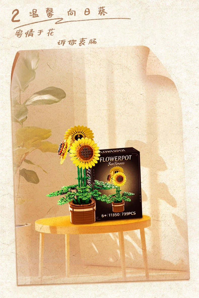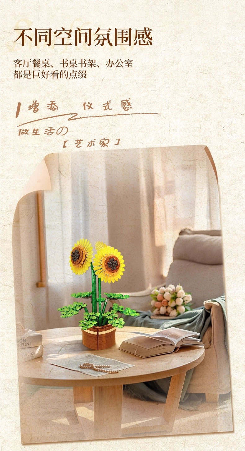 向日葵(Sun Flower)属于花卉植物系列积木套组,整个套组包含 739 个积木颗粒。首发于2025年。