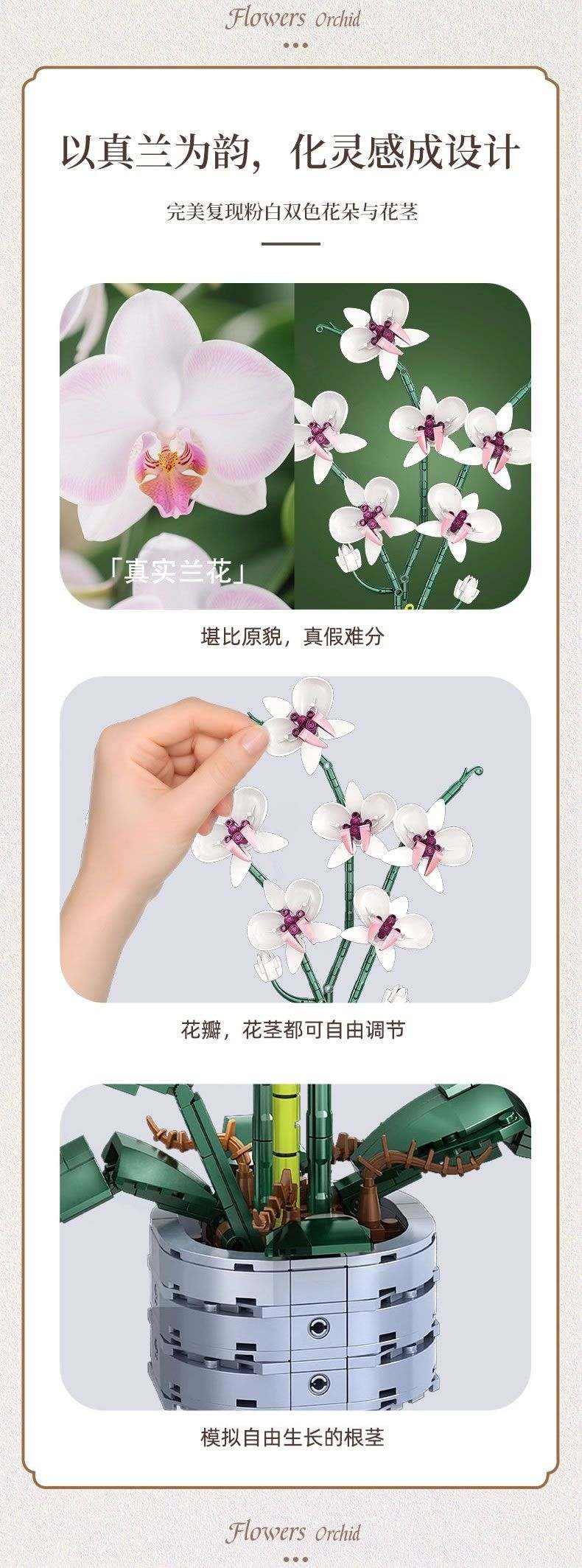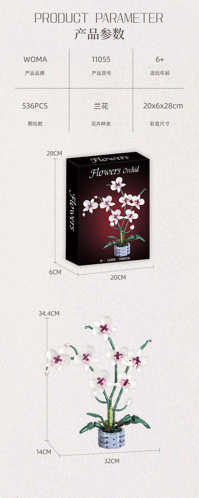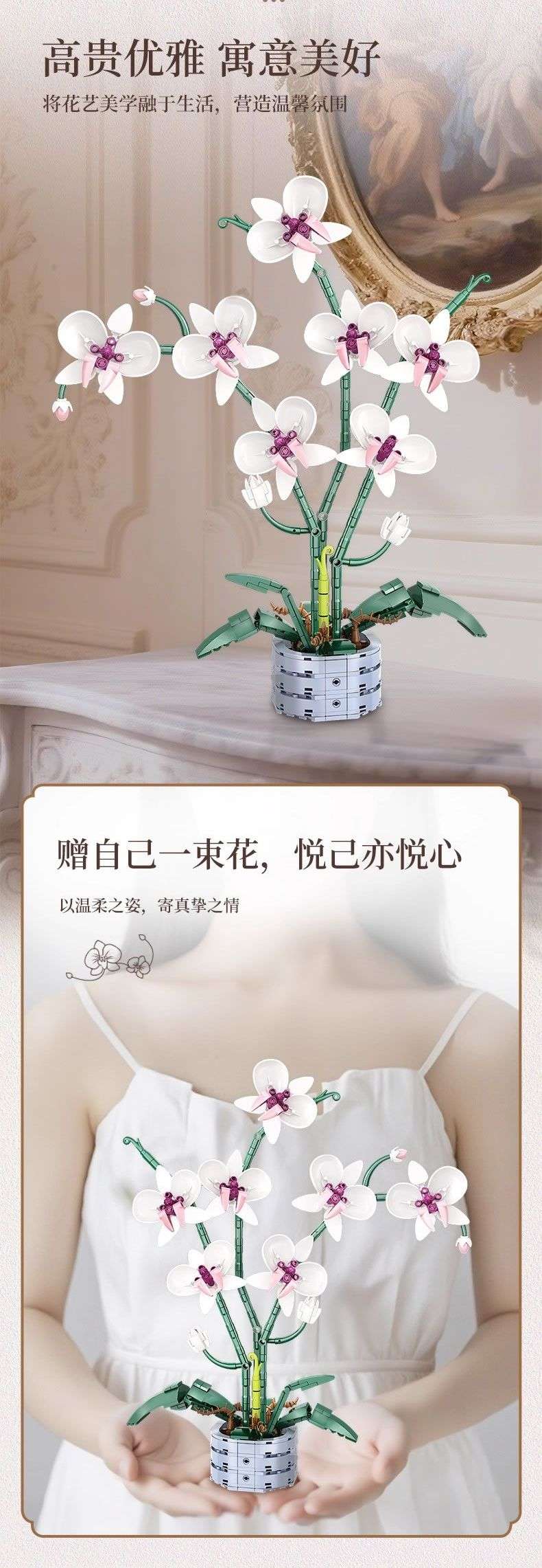国韵 蝴蝶兰(Flowers Orchid)属于花卉植物系列积木套组,整个套组包含 536 个积木颗粒。首发于2025年。