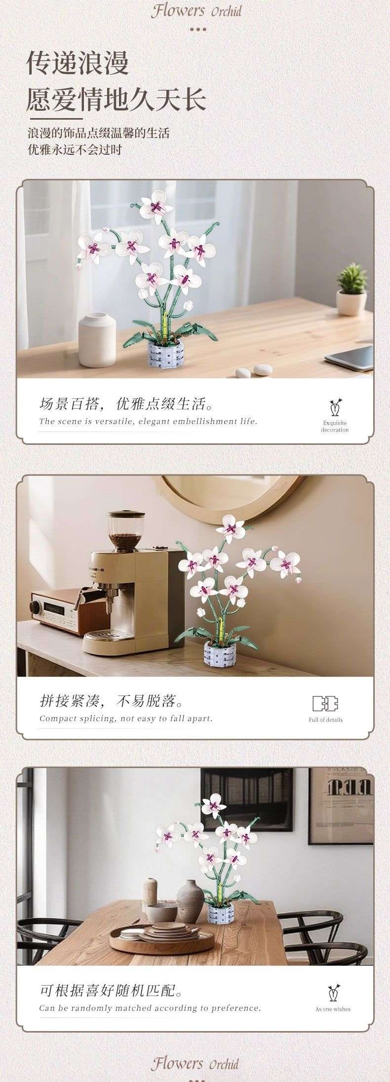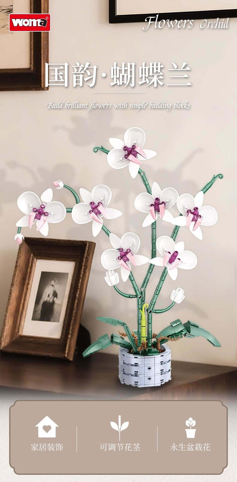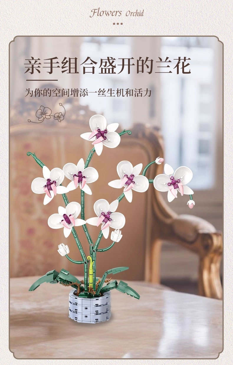 国韵 蝴蝶兰(Flowers Orchid)属于花卉植物系列积木套组,整个套组包含 536 个积木颗粒。首发于2025年。