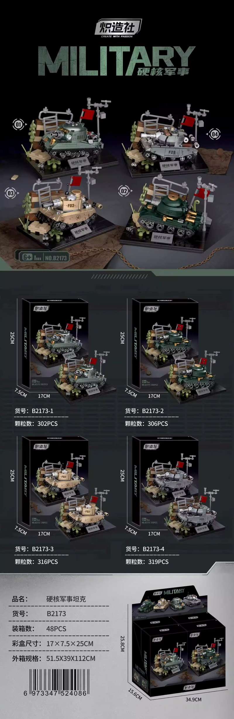 硬核军事 坦克 4款属于军事系列积木套组,整个套组包含 1243 个积木颗粒。首发于2025年。