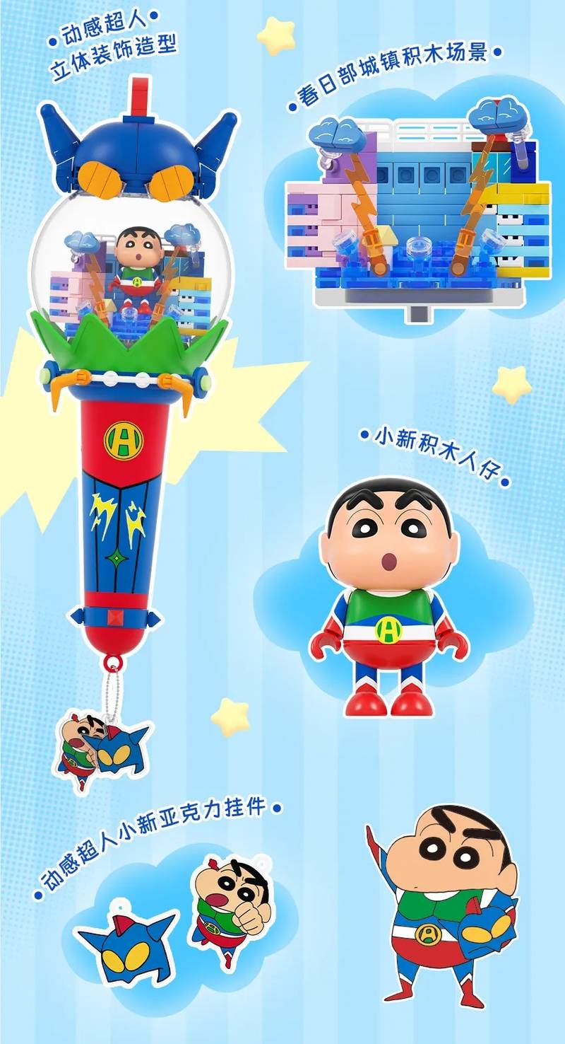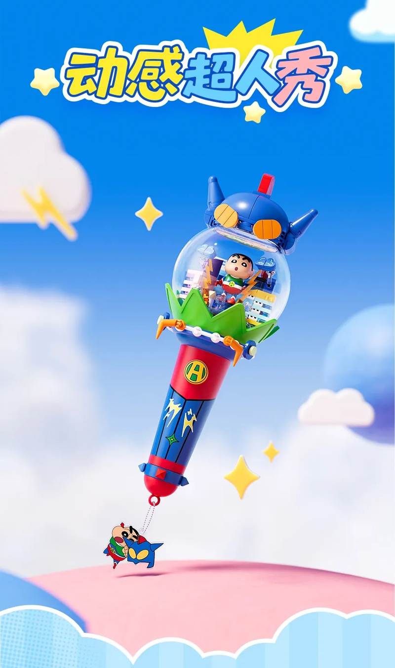 蜡笔小新动感能源应援棒:动感超人秀属于影视游戏系列积木套组。首发于2025年。