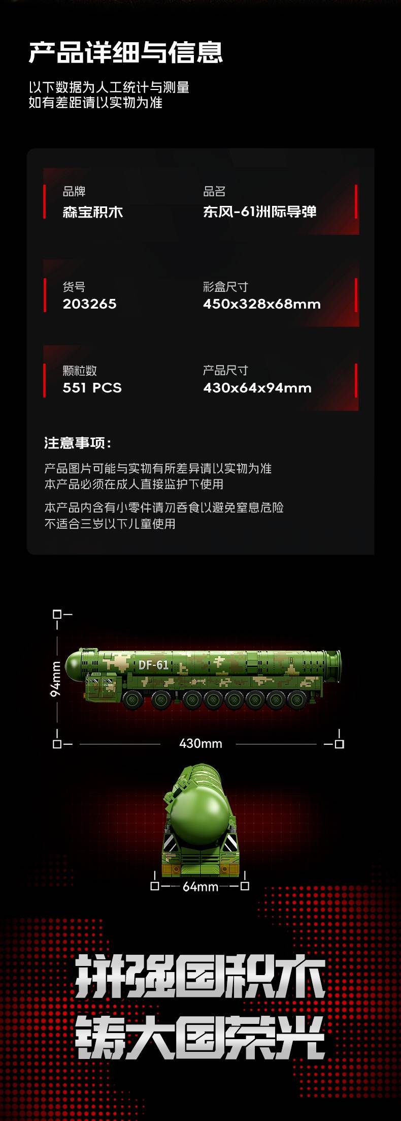 东风-61洲际导弹 1:45(森宝SEMBO 203265)