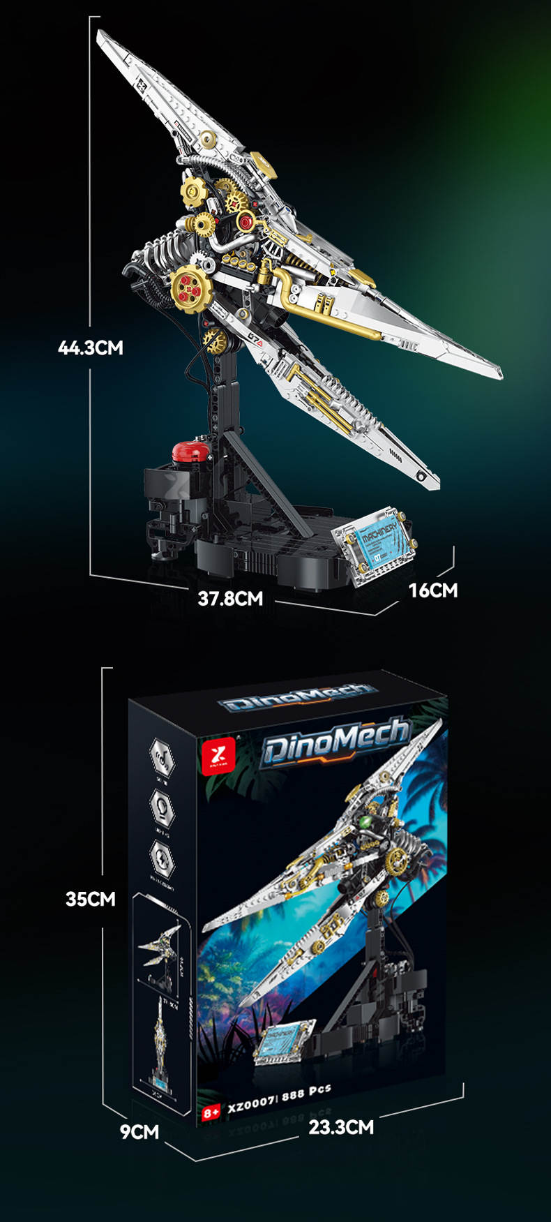 机械翼龙头骨(DinoMech)属于机械组系列积木套组,整个套组包含 888 个积木颗粒。首发于2025年。