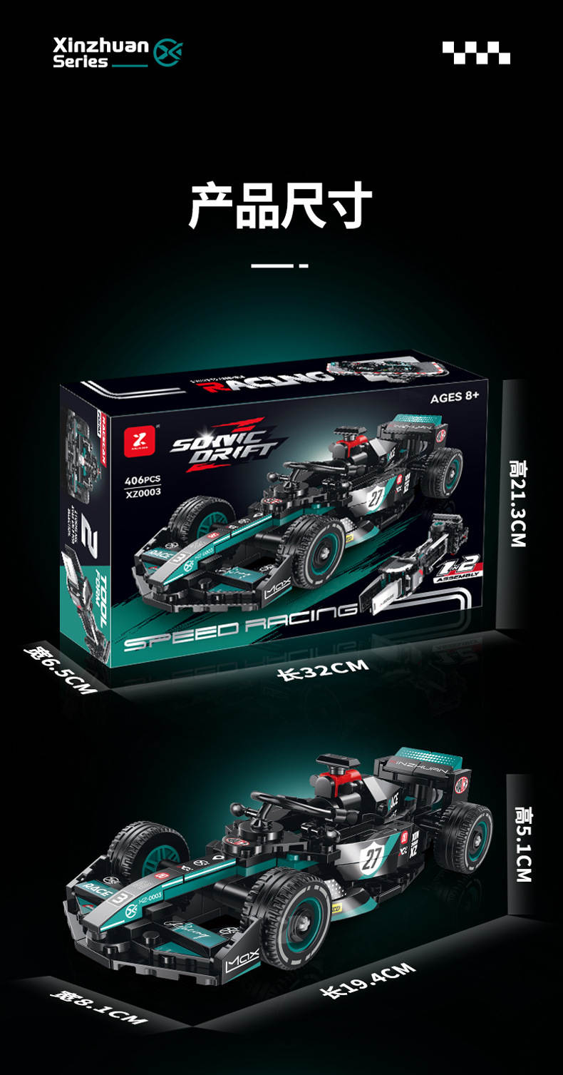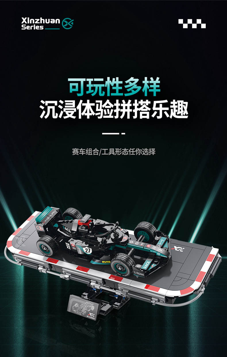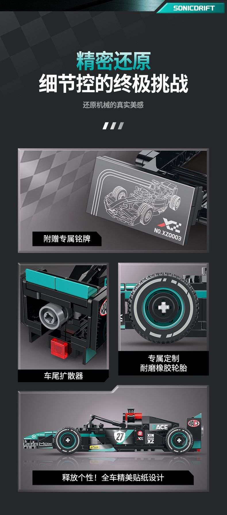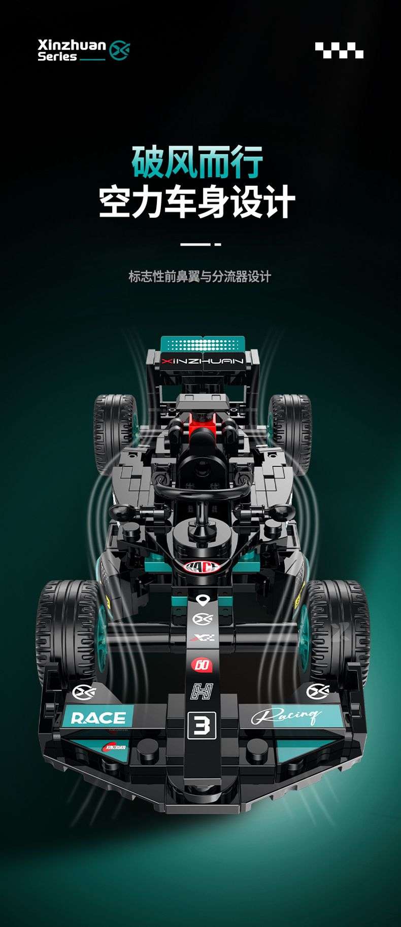 梅赛德斯F1一级方程式赛车属于赛车系列积木套组,整个套组包含 406 个积木颗粒。首发于2025年。