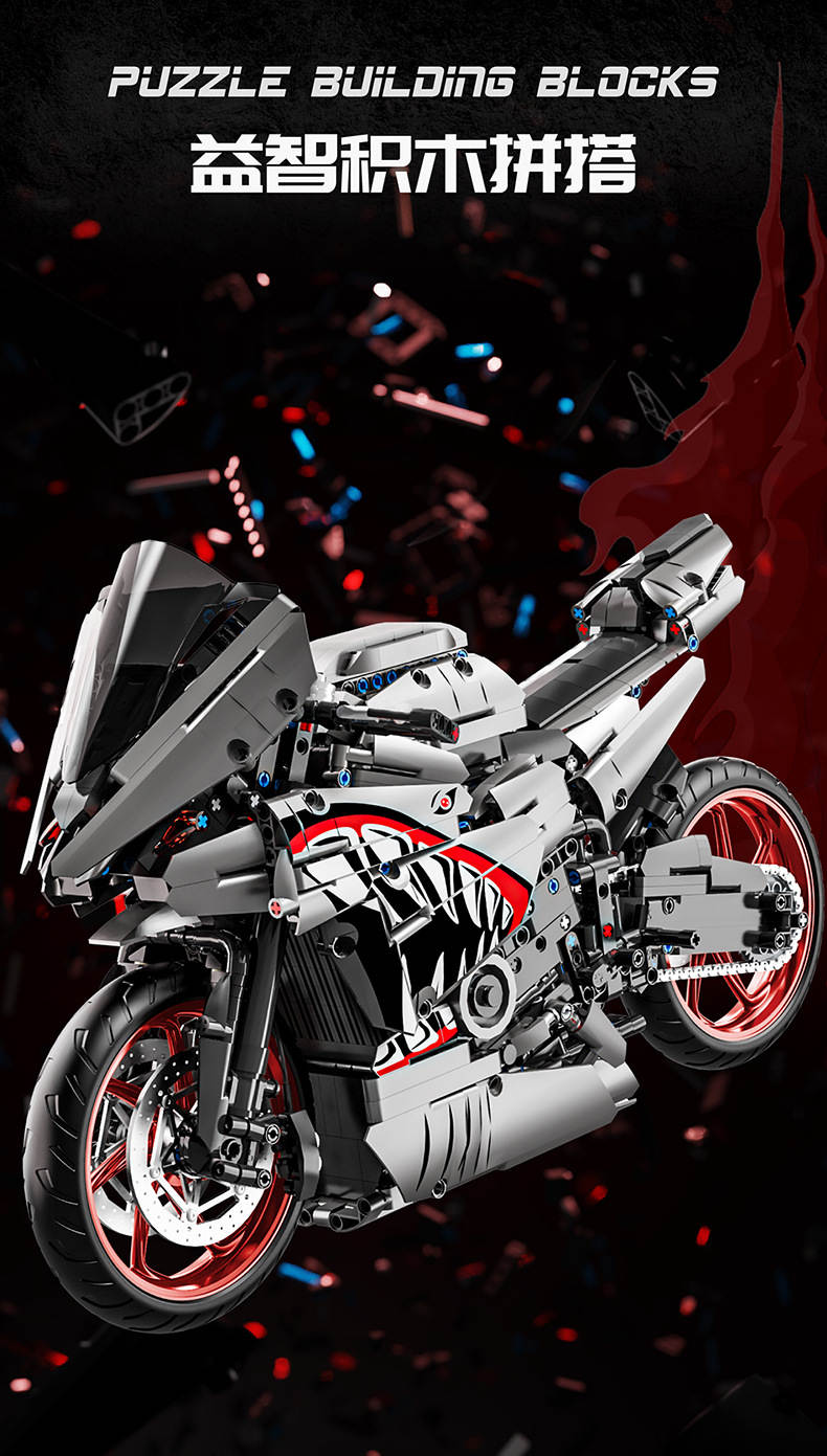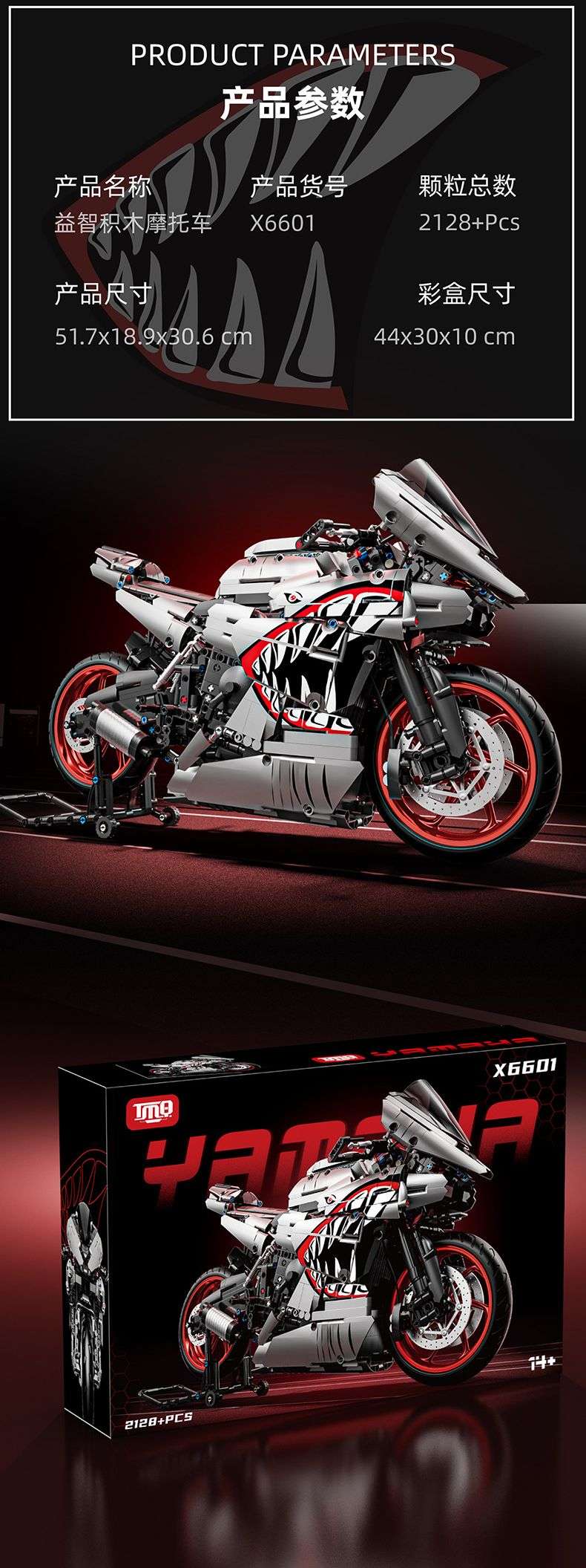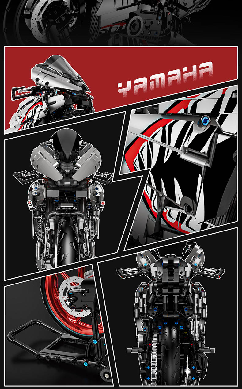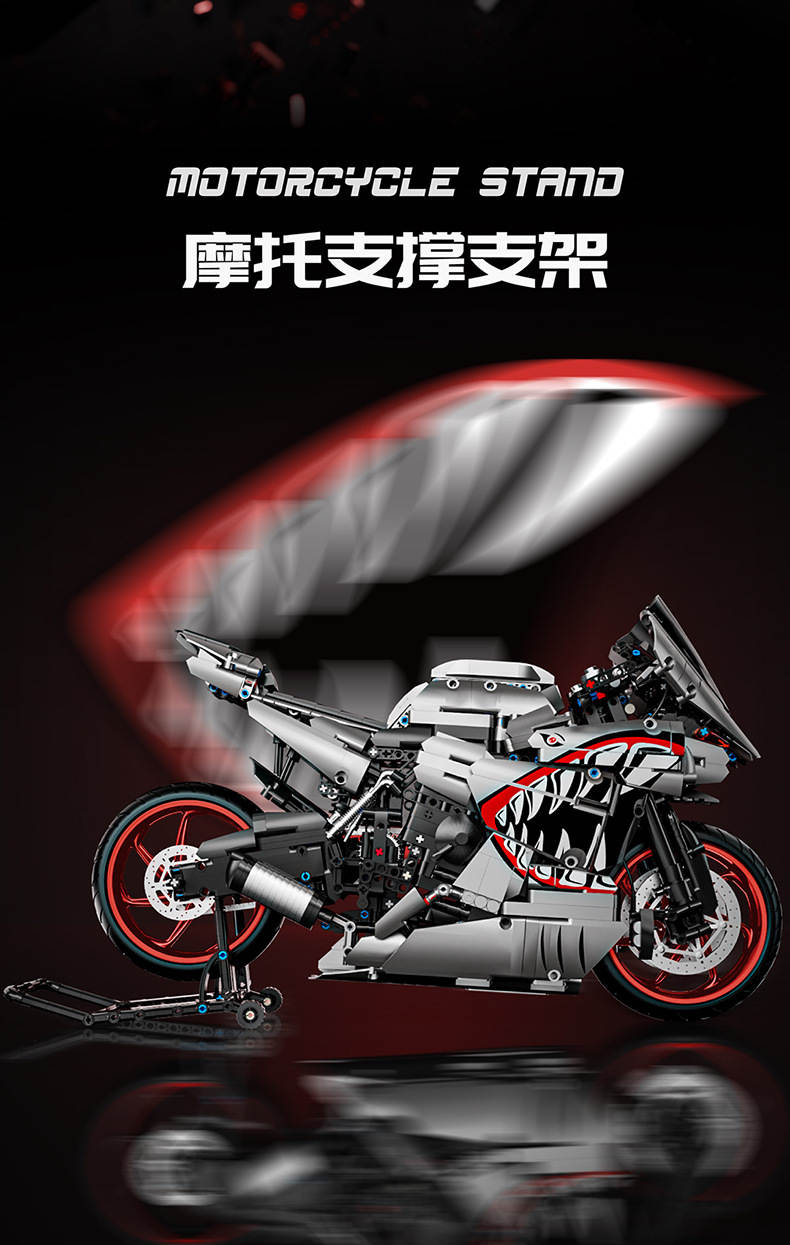 雅马哈鲨鱼摩托车属于机械组系列积木套组,整个套组包含 2128 个积木颗粒。首发于2025年。