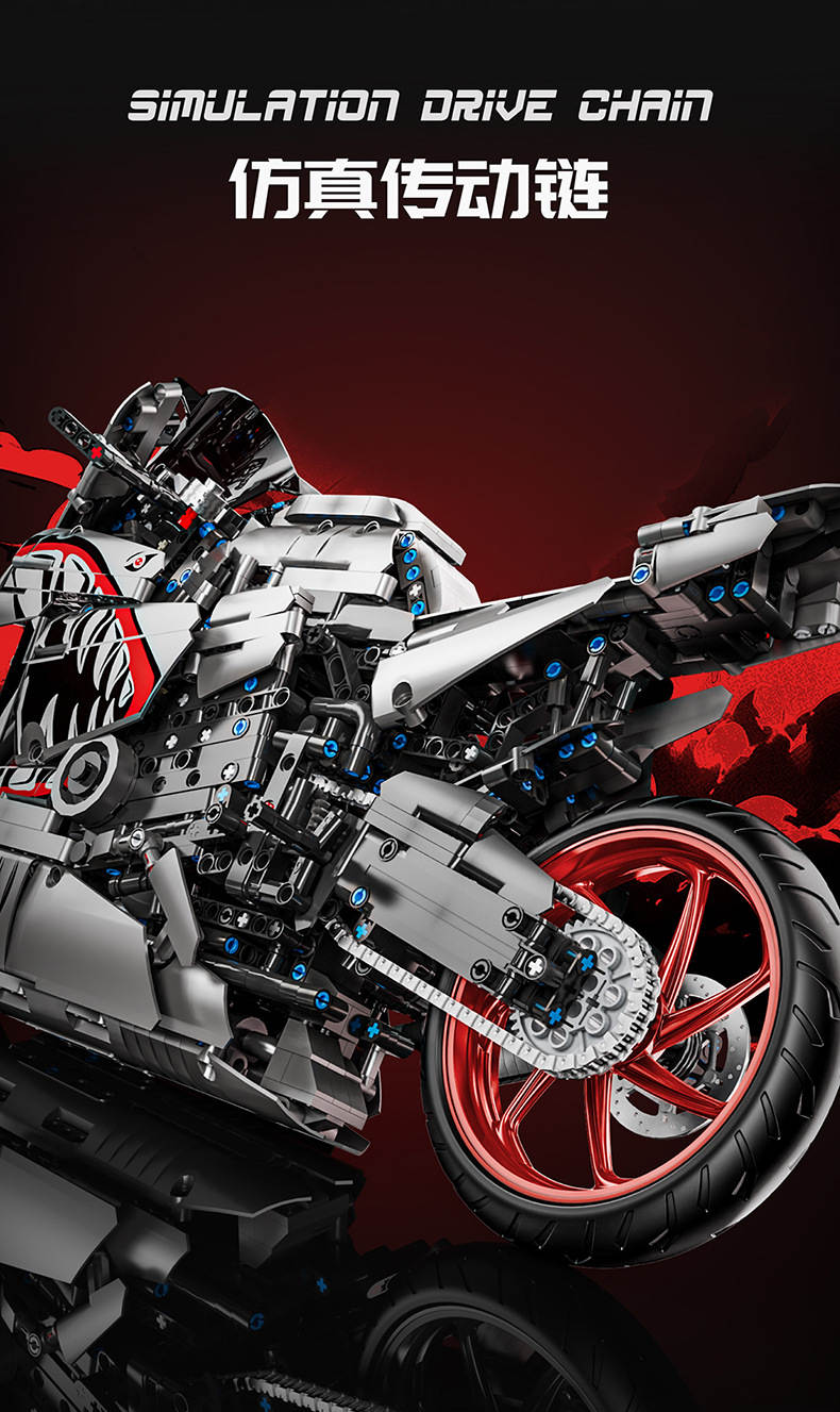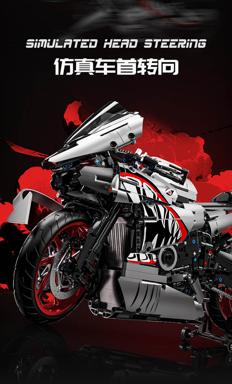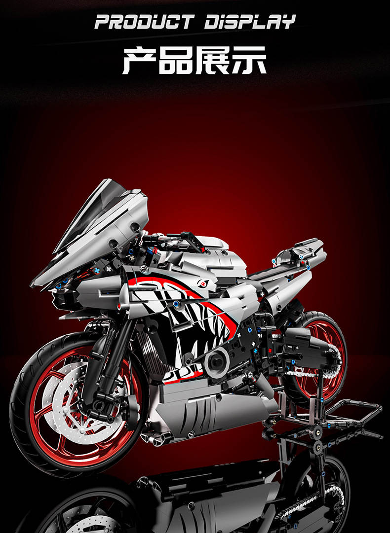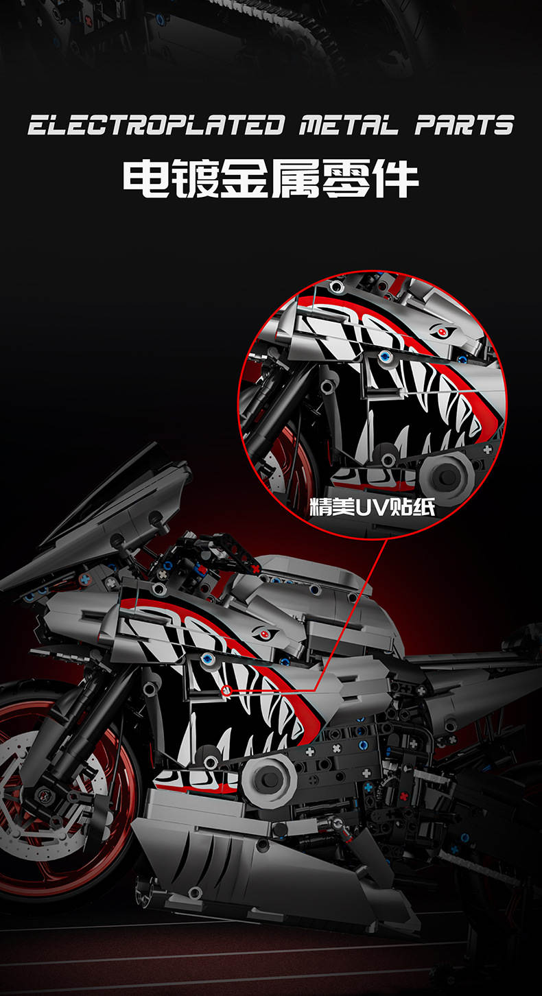雅马哈鲨鱼摩托车属于机械组系列积木套组,整个套组包含 2128 个积木颗粒。首发于2025年。