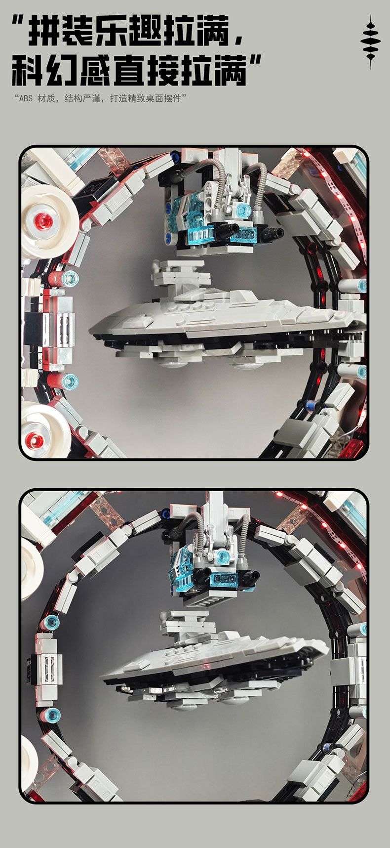 2020年,402PCS。悬浮火星研究航天飞机,张拉平衡架版本,细节有替换。航天飞机本体加底板平衡架,无人仔等配件。