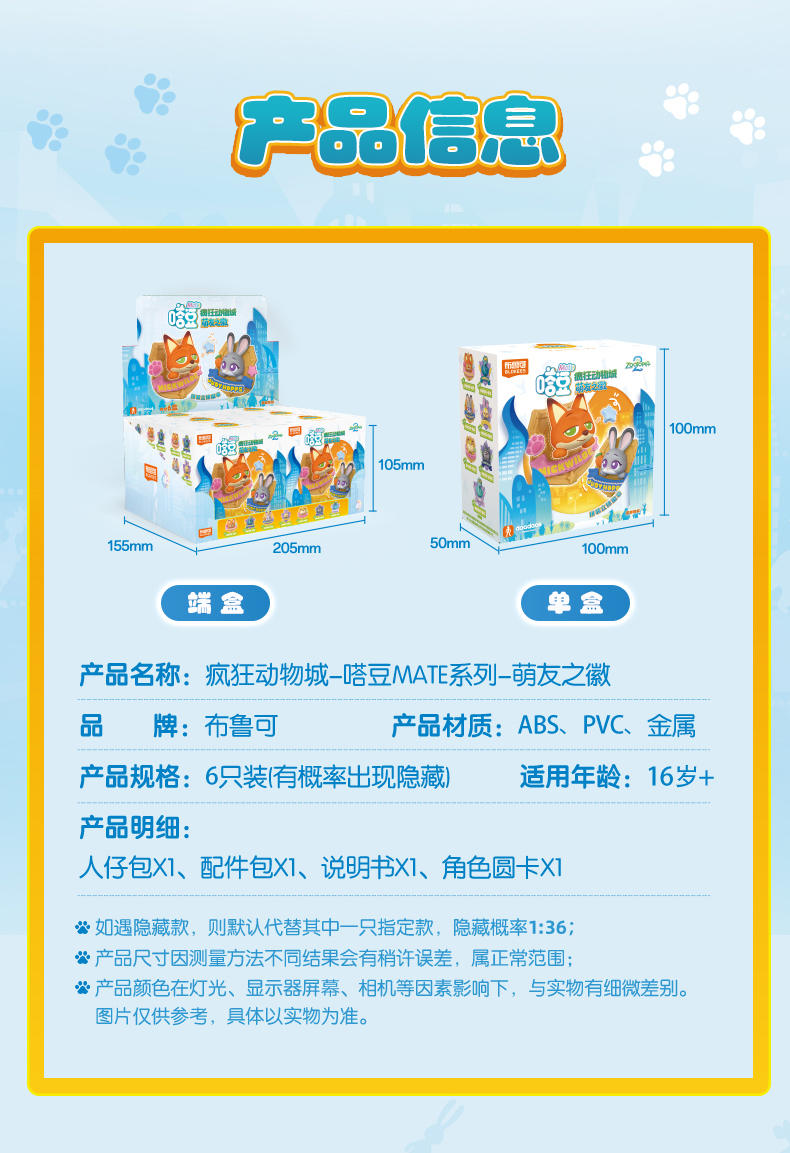 疯狂动物城 嗒豆Mate 01 萌友之徽 盲盒(布鲁可BLOKEES 【未知】fkdwcjmate01)