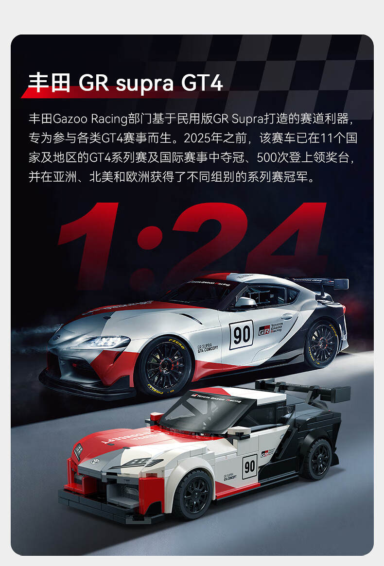 丰田 GR Yaris Rally1 1:24(Toyota GR Yaris Rally 1)属于超级赛车系列积木套组,整个套组包含 317 个积木颗粒。首发于2025年。