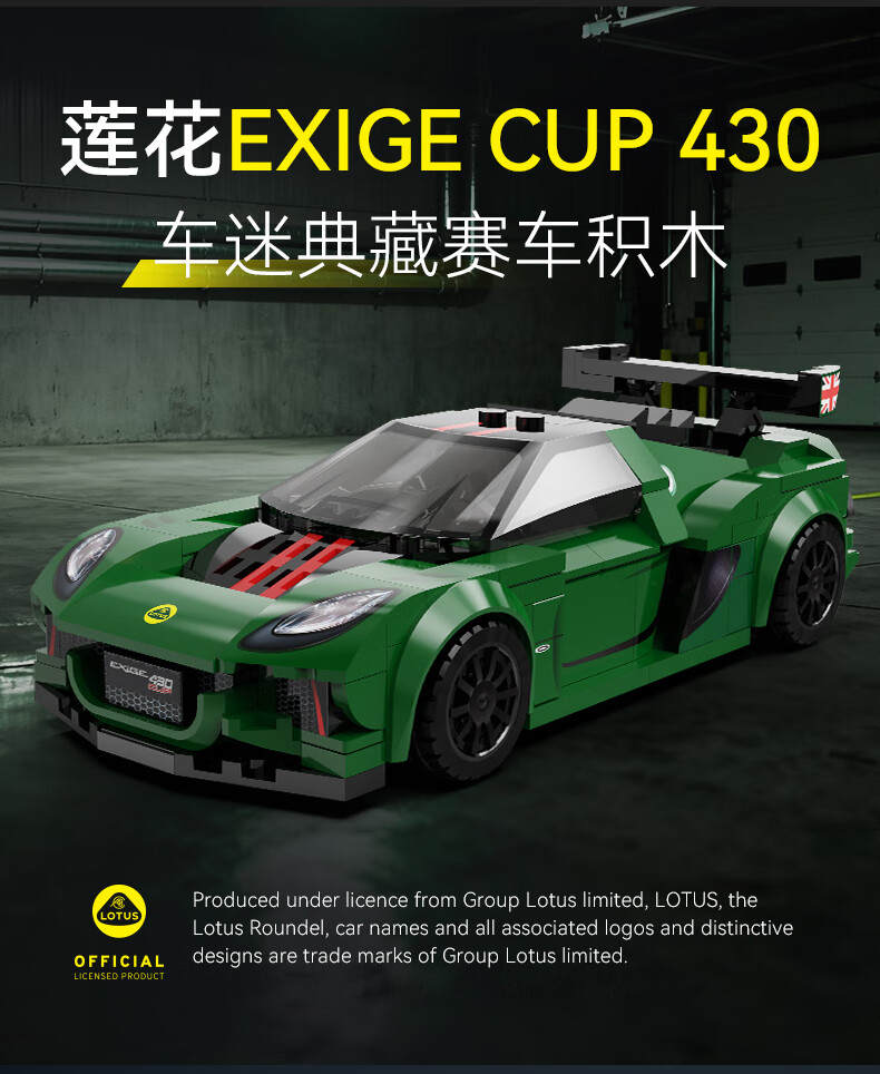 路特斯 Cup 430 Exige 1:24(Lotus Cup 430 Exige)属于超级赛车系列积木套组,整个套组包含 319 个积木颗粒。首发于2025年。